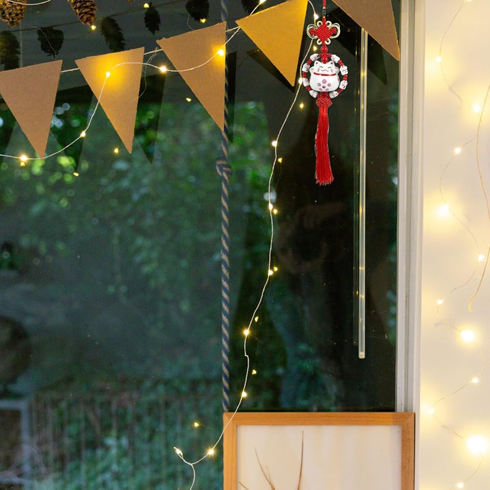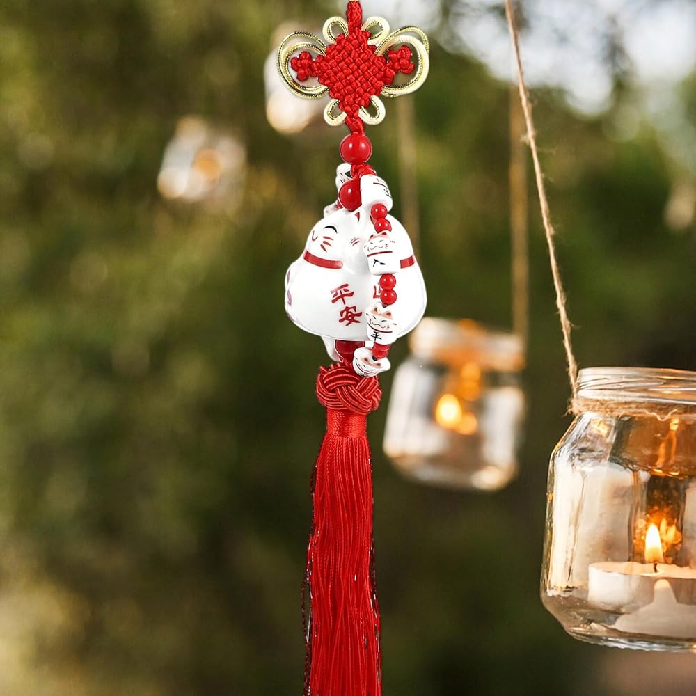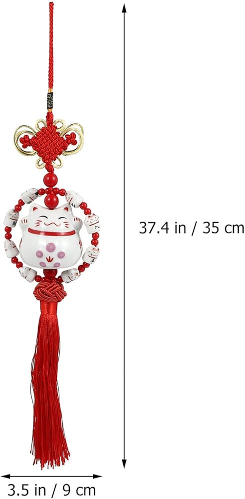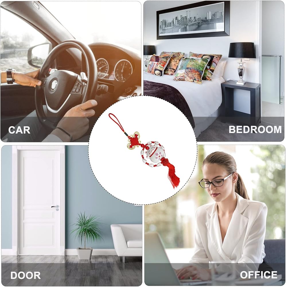 IMIKEYA Mirror Decor Feng Shui Lucky Cat Charm Ceramics Maneki Neko Fortune Cat Figurine Car Rear View Mirror Pendant Key Cell Phone Bag Pendant for Car Interior Ornament Red Interior Accessories