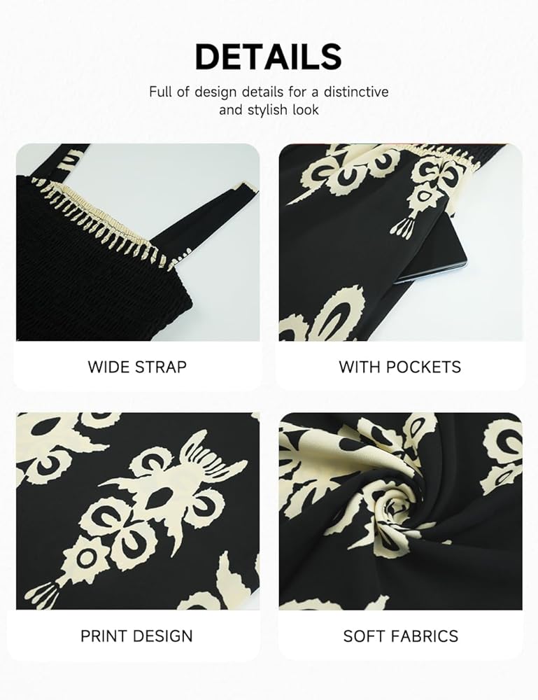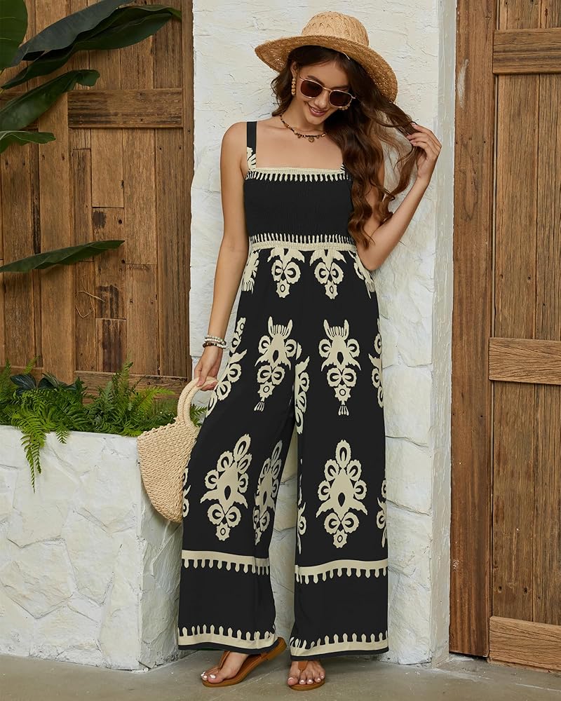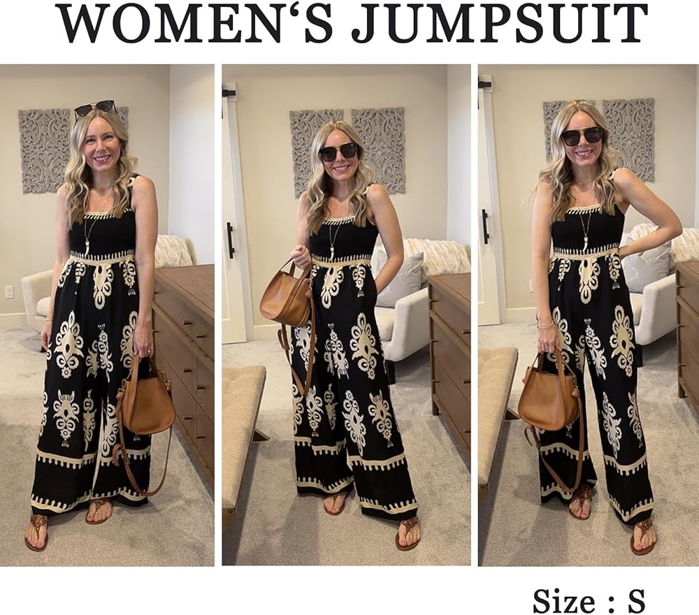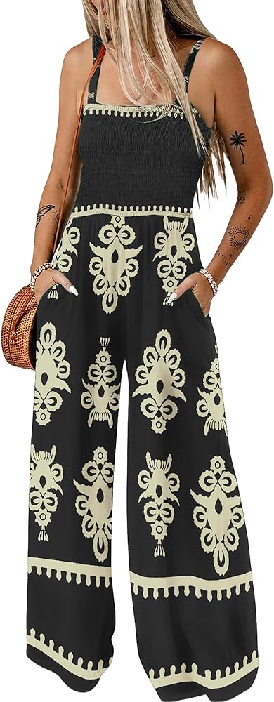 【Design】Women's casual jumpsuit is made of print design and boho style, wide leg long pants and two side pockets,making it an ideal choice for women looking for a loose fit and casual style