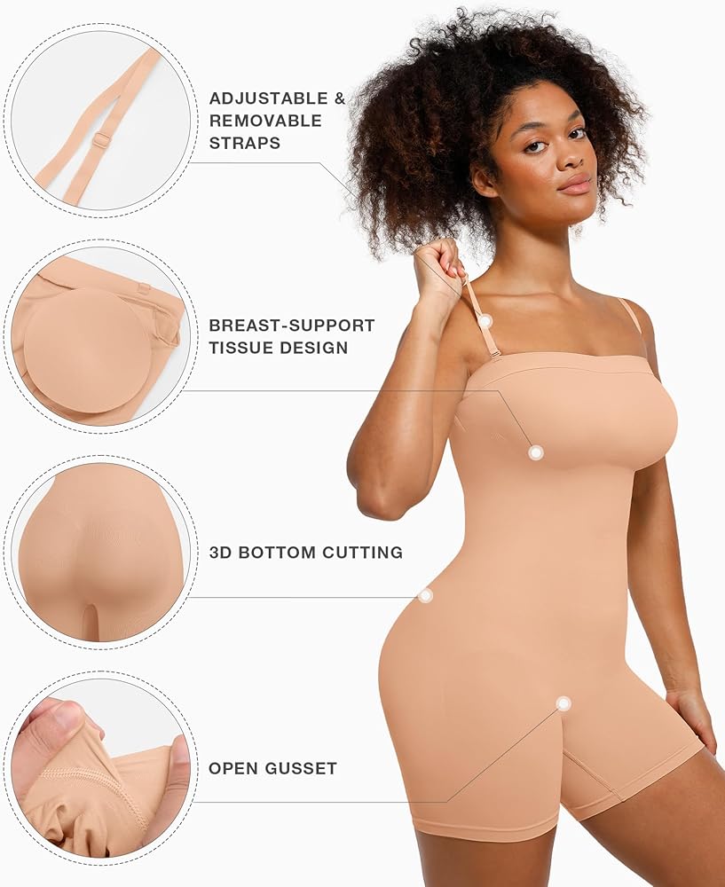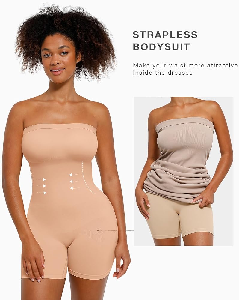 [Versatile Occasions]: The Strapless Shapewear Bodysuit is your go-to for every occasion. Whether it's office wear, daily activities, or a night out, this seamless, lightweight, and stretchy piece effortlessly complements shorts, low-cut blouses, skirts, and off-shoulder dresses with style and comfort that goes beyond expectation.