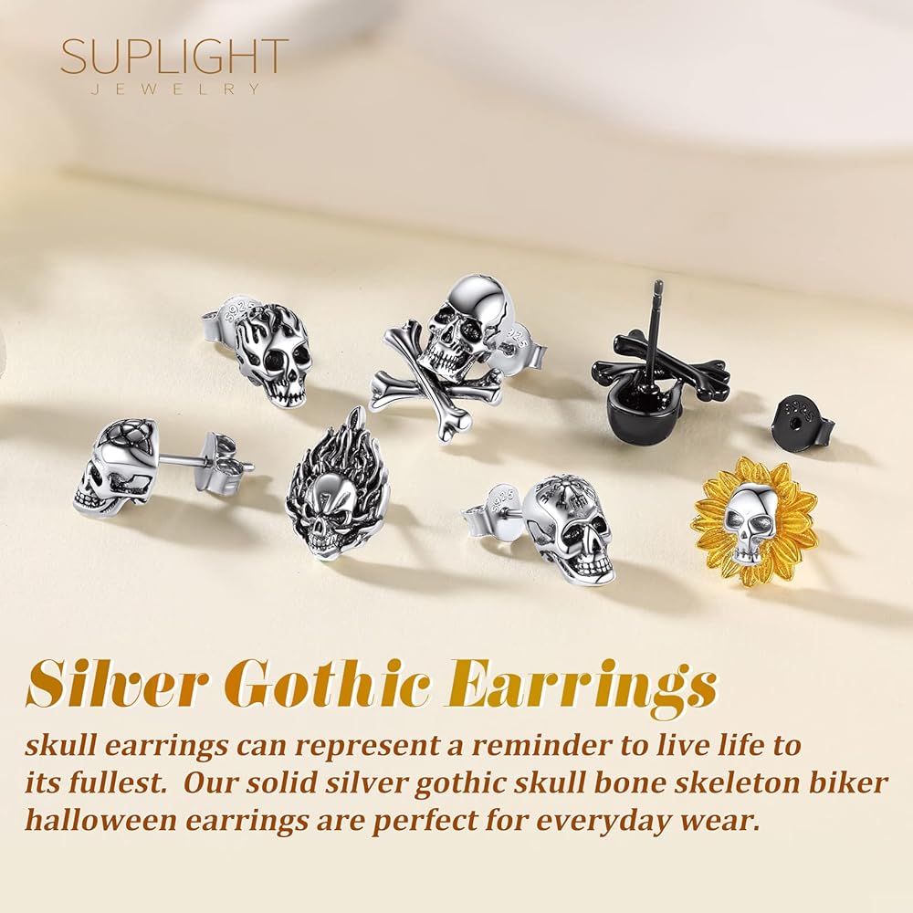 925 STERLING SILVER EARRINGS -- Exquisitely crafted in 925 sterling silver with stamp. High quality skeleton skull ear studs, retro enamel black, never fade. No harm to skin, comfortable to wear.