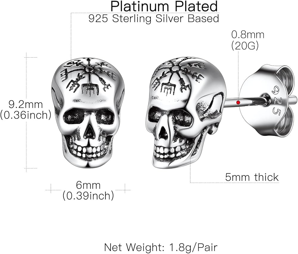 EARRINGS DIMENSIONS --9mm* 6.5mm*5.7mm. Dainty skull stud earrings, nice weight, secure and tight, not cause earlobe to droop. Very comfortable, very cute, and very punk