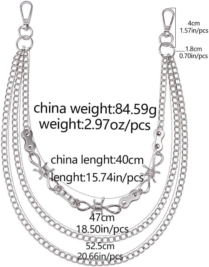 Chains for jeans: The chain measures approximately [insert appropriate dimensions in inches] in length, allowing for a customizable fit and adjustability.