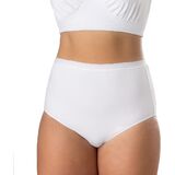 Keep your look classic and comfortable with Elita's Women's PLUS Full Fit Brief. Featuring a figure-flattering high cut leg and modest high rise, our ultrasoft, premium cotton blend underwear provides full rear coverage in a sleek silhouette. Smooth construction, a sewn-in cotton gusset, non-bunching elasticized waistband and light tummy support ensure all day non-pinch comfort. Machine washable, our classic cotton panty will maintain its shape through multiple washes. Includes one pair of high cut panties. Elita: Designed By Women For Women.