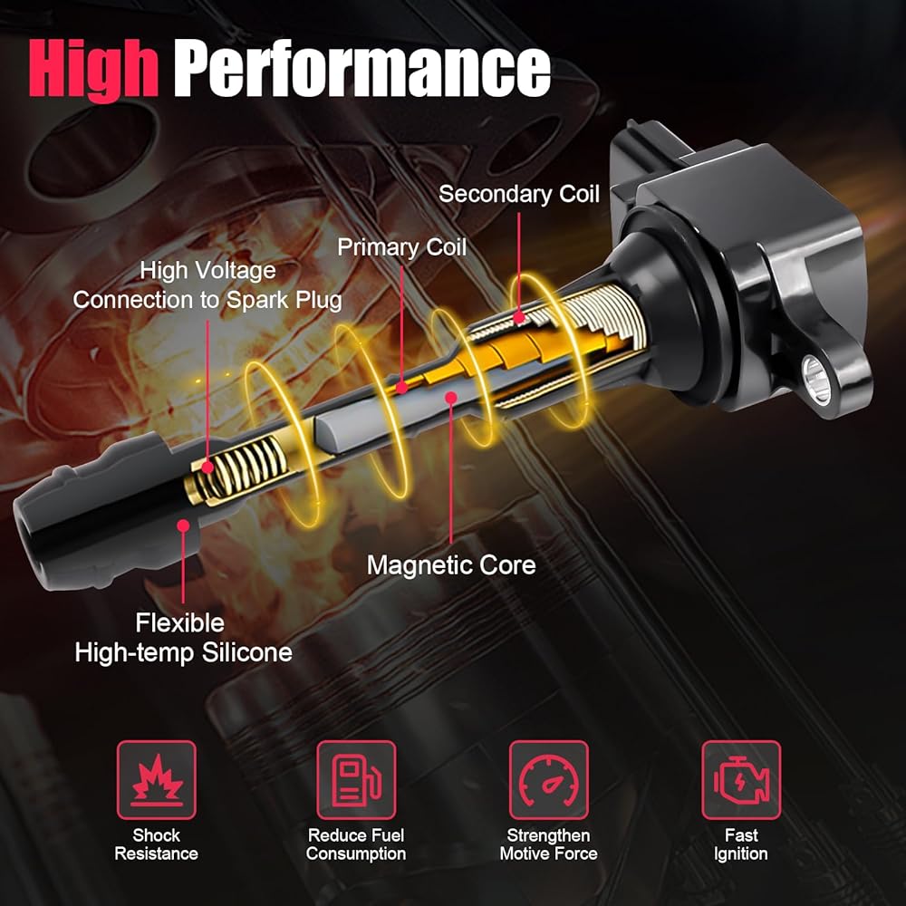 【Excellent Function】: After approximately 50,000 kilometers of driving, your Coil Packs may start to show signs of aging, potentially leading to engine misfires, rough idling, decreased power, and poor fuel economy. Our meticulously designed and upgraded Coil Packs are engineered to surpass OEM standards, ensuring effortless installation and drastically improving performance. Experience exceptional cold-start capabilities and smoother engine operation.