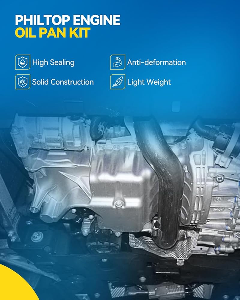 Precision Design: PHILTOP engine oil pan is made of high quality material, the shell is of high strength, not easy to deform and aging, after heavy quality testing, not afraid of high temperature, good product performance and long service life