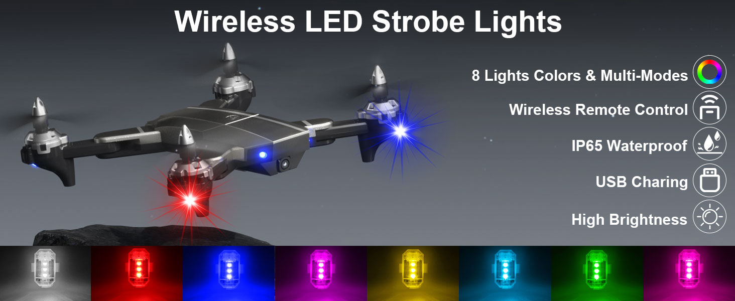【Upgraded Wireless Remote Control】The drone strobe light come with a remote control for convenient color and mode adjustments within a 7-meter range, complete with a memory function