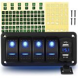 GOOACC Multi-Functional 2 Gang Switch PanelRocker Switch:Backlit: RedInput voltage: 12V/24V DCSwitch Terminal: 5 PINInstallation: Panel Mount, Pre-wiredDual USB Charger:Output voltage: 5V DCOutput current: 4.8A (2.4A 2.4A)Voltmeter:Display Method: LED.Measuring Range: 12V-24V DC.Note:Amp rating for EACH SWITCH: 12V DC/20AMP; 24V DC/10AMP.Please wire a relay if you are going to hook an accessory that is over 20AMP at a 12VDC power source. Or the switch will be burnt out due to its high current.GOOACC 2 gang switch panels can be used to control LED light bars, LED work lights, rear lights, fog lamps, driving lights, headlights, taillights, off-road lights, auxiliary lights, boat lights, etc.Equipped with a sticker, you can define the name and assign switches according to your needs. The product fits most cars, SUVs, ATVs, UTVs, 4X4, motorcycles, trucks, Wranglers, boats, yachts, and other off-road vehicles.