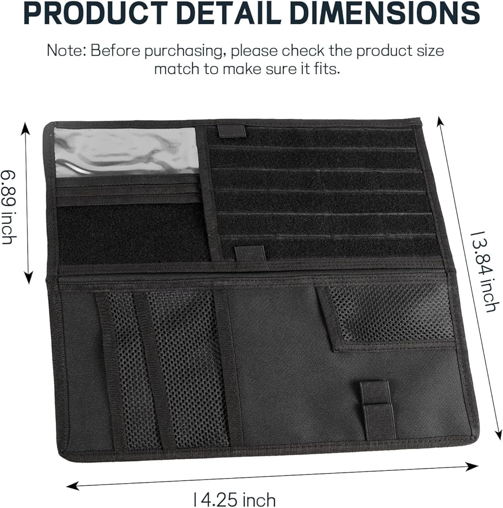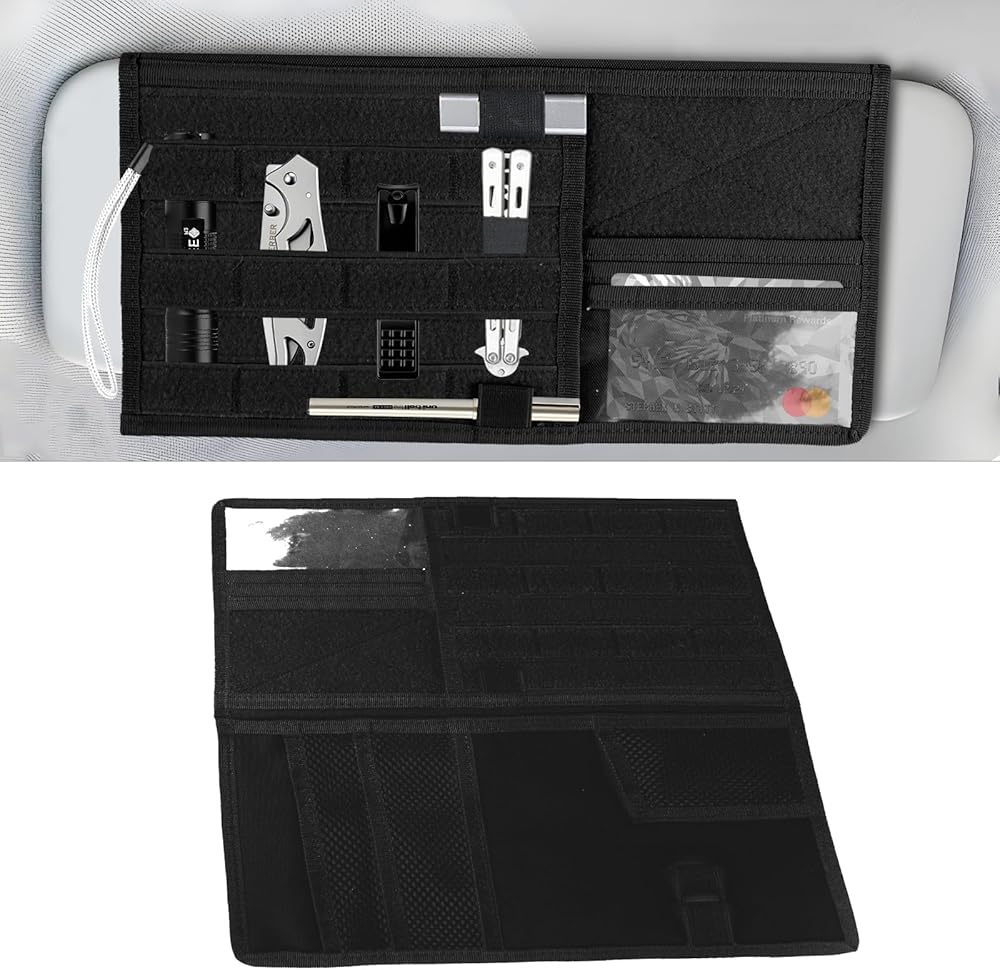 【Widely Used】: This visor organizer is oversized to fit most trucks, pickups, or other large vehicles.The Molle system integrates seamlessly with a wide range of tactical gear, providing vehicle owners, especially men, with a practical, customizable and modular storage solution.