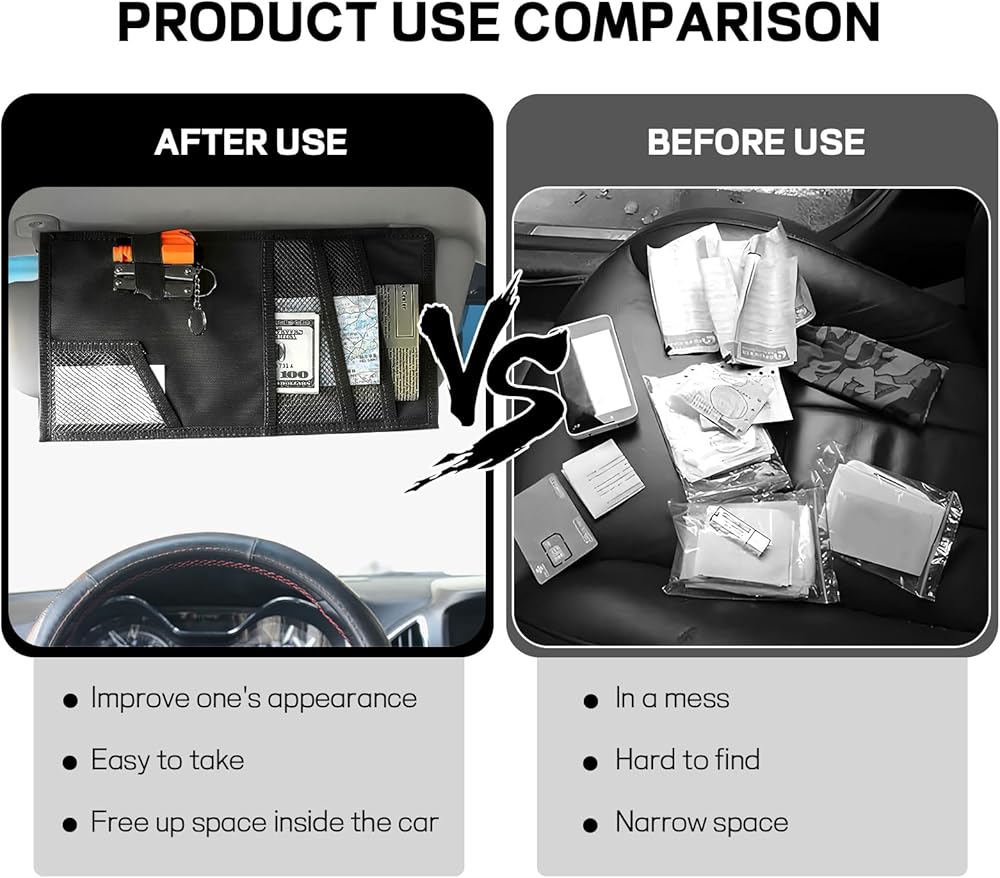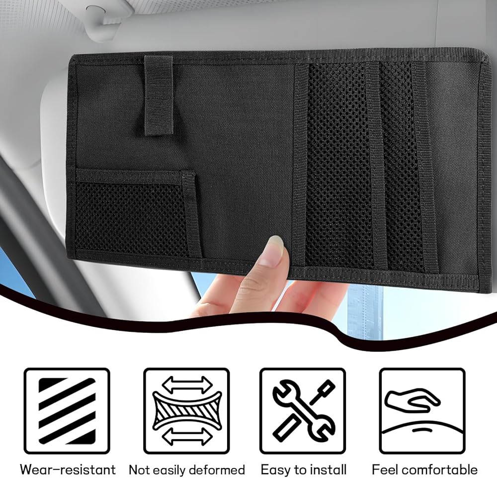 【Neat & Convenient】: It keeps items organized and avoids them from getting scattered or lost in the vehicle. In addition, these essential small items of yours are sitting right above your head on the sun visor, within your reach, providing easy access for you when you need them.