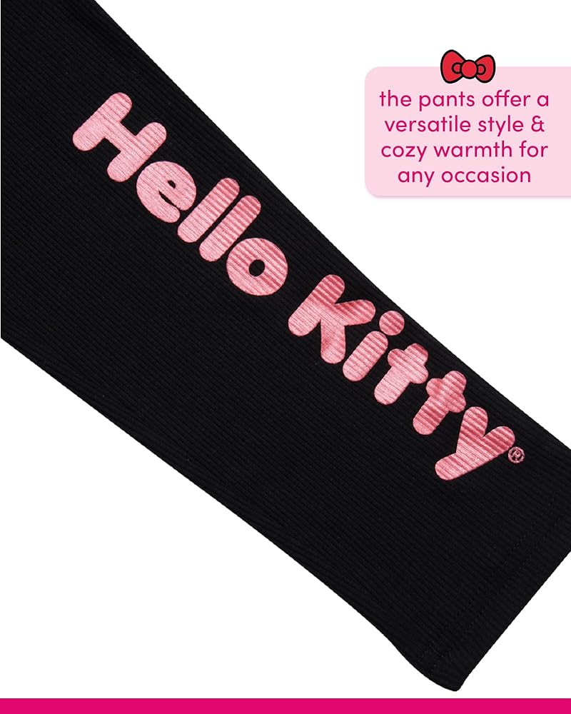 PRINTED LONG SLEEVE TOP: Elevate her wardrobe with the Hello Kitty Girls' Pants Set, featuring a charming printed long sleeve top adorned with her favorite feline friend, Hello Kitty, ensuring style and comfort for every adventure. Made with high-quality materials, this top boasts durability and breathability, making it perfect for everyday wear.