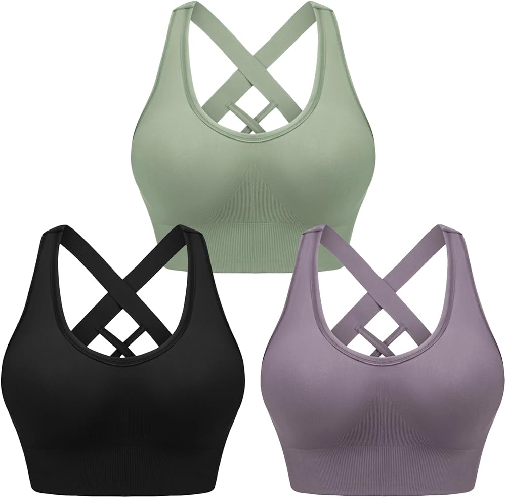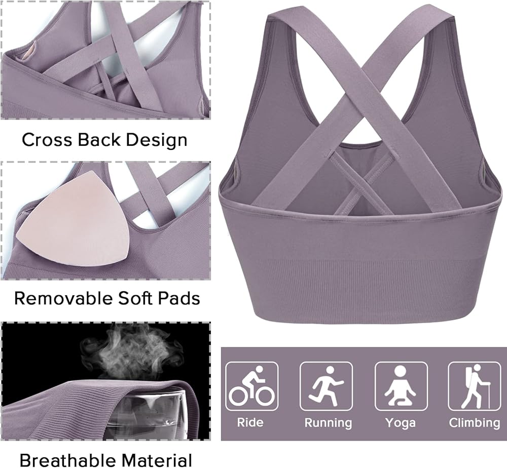 Sykooria Pack Sports Bras for Women High Impact Supportive Padded Workout Bras Crop Workout Tank Tops
