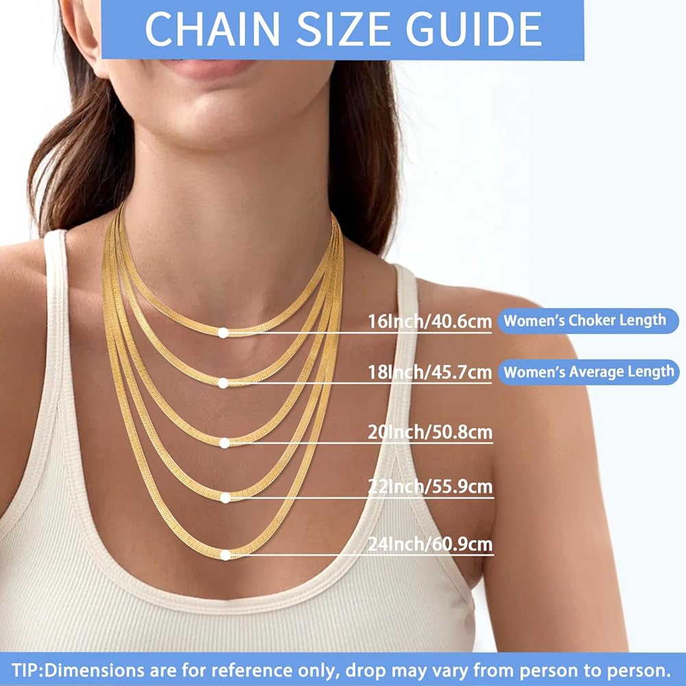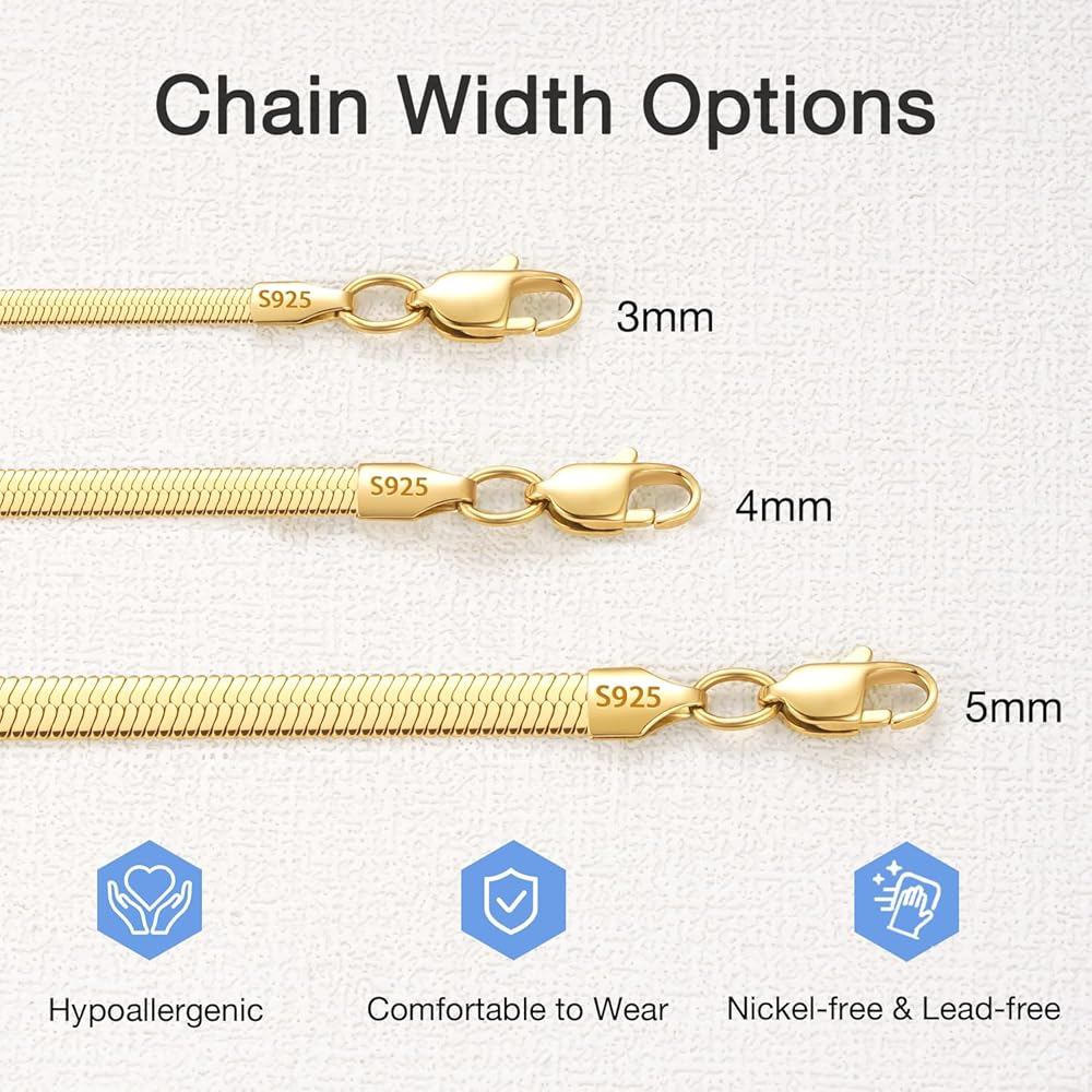 Hypoallergenic & Comfortable Gold Necklace: 18K gold herringbone necklace for women adopts Real 925 Sterling Silver base and plated in 18K Gold, which will both stay consistent and reflective. All the materials we use are Lead-free, Nickel-free and Hypoallergenic so that you can be assured to wear them daily. The exquisite craftsmanship ensures a smooth surface, preventing hair tangles and skin irritation. Embrace comfort and elegance with this must-have accessory now!