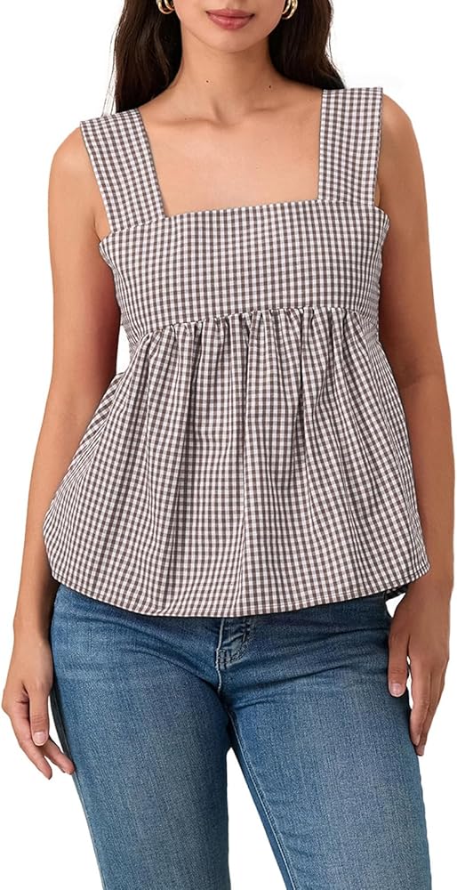 Style: Cute women y2k going out tank tops, peplum tank tops for women, gingham tops, square neck plaid or striped back bowtie cami shirt, simple and classic, elegant, adorable and comfy, perfect women spring summer fall winter going out club clothing