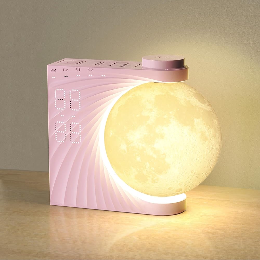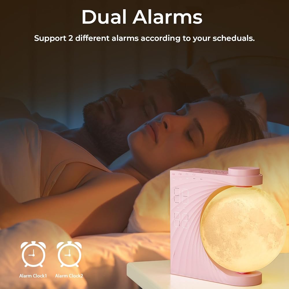 【Cool Decorative Lamp, Excellent Present】This moon night light alarm clock can be used as a decorative light, bedside lamp, and reading lamp. A sleek aesthetic bedside design make our clock an essential home and office decoration and a best practical birthday present gift gift for friends, colleagues, adults, women, kids, and families.