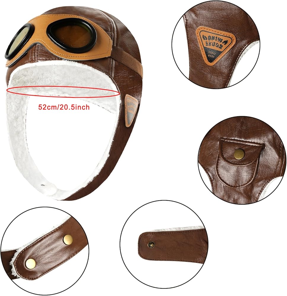 Material: Our aviator hat with goggles has a sophisticated look and soft faux leather for comfortable wear. The scarf is 70.8*19.6inch/180*50cm(L*W), made of quality cotton, adults can also wear the scarf comfortably and participate in the activities with your kids
