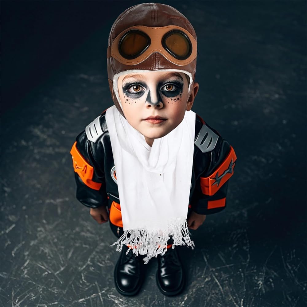 Great pilot costume for kids: our pilot costume set includes a pilot hat with goggles and white scarf that will complete your pilot role play for your Halloween party nicely