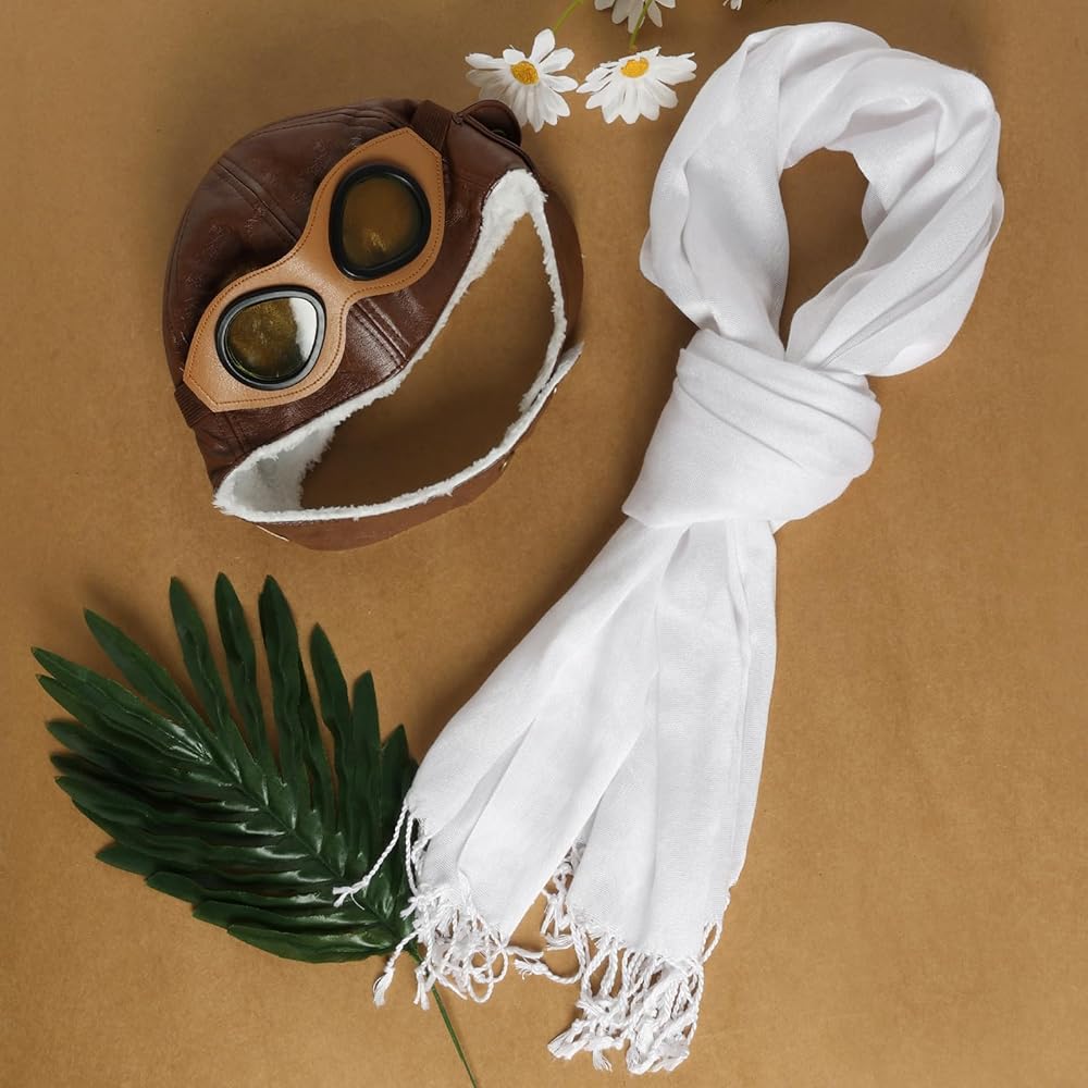 Size: the size of the white cotton scarf is 70.8*19.6inch/180*50cm(L*W); the kids aviator hat's head circumference size is about 20.5in/52cm, and the buckle on the hat can be adjusted in size, which is suitable for people of different age