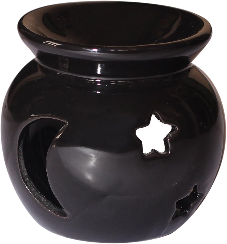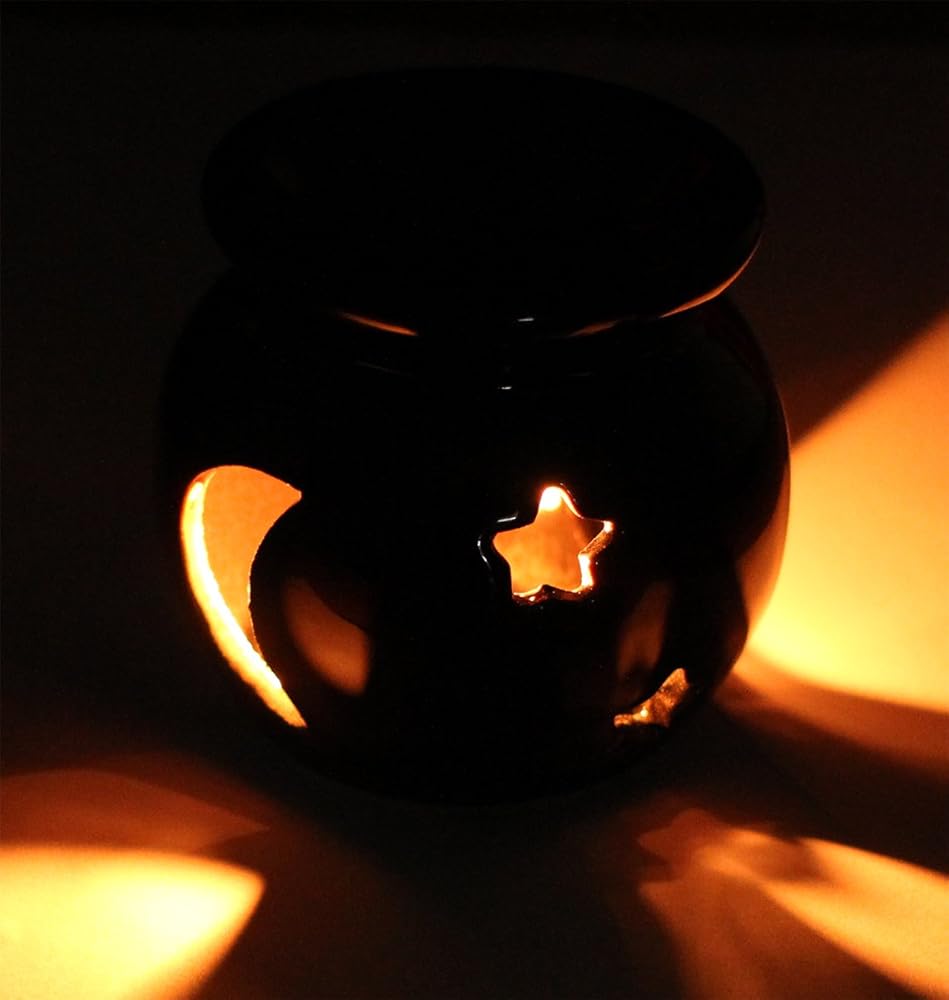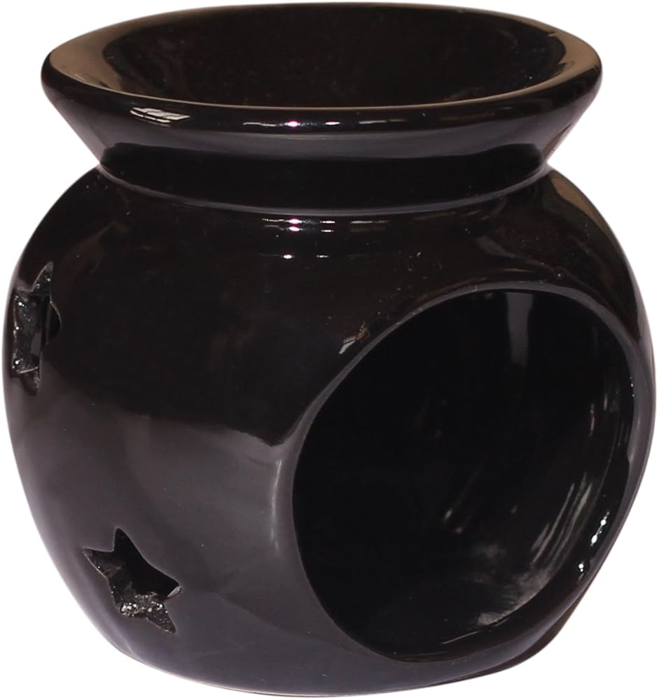 ABHANDICRAFTS Ceramic Essential Oil Burner – Handmade Wax Warmer for Aromatherapy & Fragrance – Ideal Gift for Mom – Elegant Home Décor for Living Room, Balcony, Porch, & Garden (Black)
