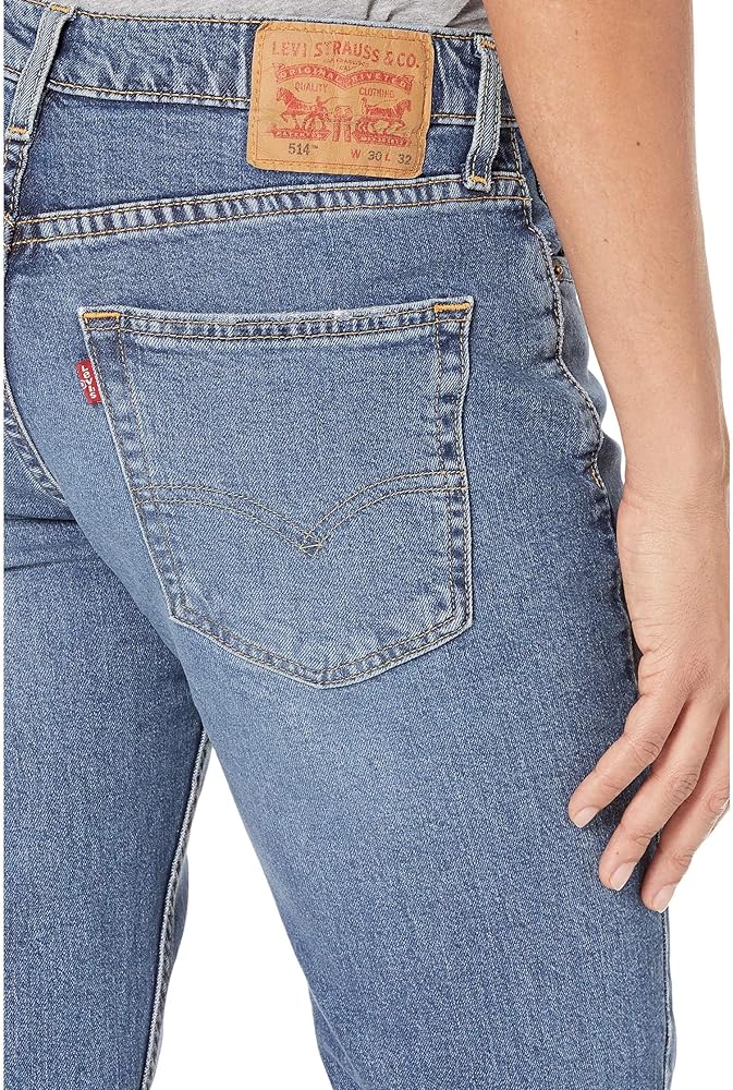 The Levi's look that find the balance between comfort and style. The 514 offers a classic straight-fit that sits low on the waist, with a regular fit through the thigh, and a straight leg. Five pocket design with signature arcuate stitch at back. Leather brand patch at back waist. Belt loop waistband. Zip fly and button closure. 98% cotton, 2% spandex. Machine wash cold, tumble dry low.