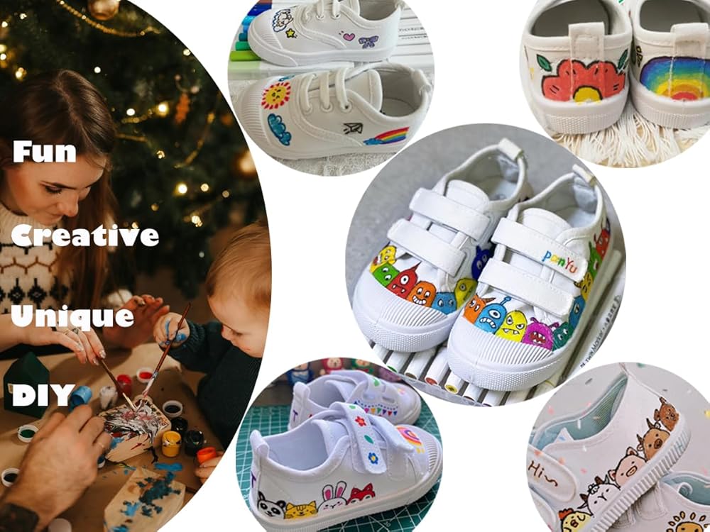 DIY for Unique Style : With a solid white minimalist shoe surface, children can unleash their creativity by DIY their shoe designs, sparking imagination and creativity.