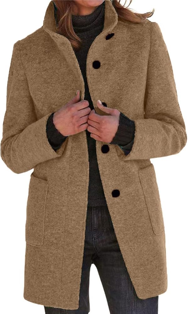 Versatile Dressy Winter Coat: Wool duster jacket for women causal/ regular fit wool long pea coat/ wool blend trench coat for women/ long winter coats for women/ tweed jacket for women outwear/ single breast wool blend trench coat/ women short overcoat for outing/ black long coat/ camel wool long blazer jacket for women/ professional business office work long blazer pea coat