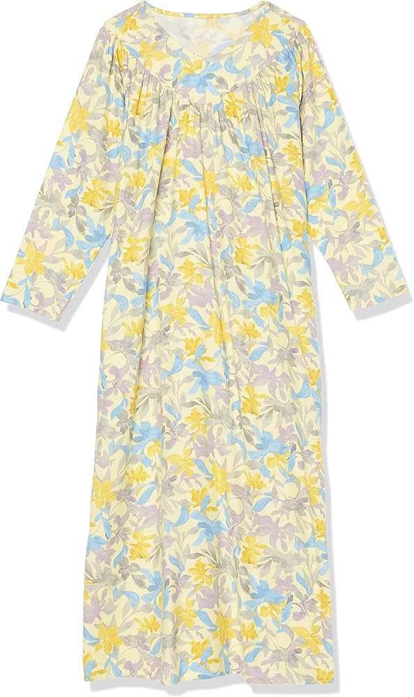 From cozy nights by the fireplace to casual mornings lounging about the house, this floral flannel gown is a totally comfortable option you'll love. Made of cotton flannel, the fabric is soft on your skin, and its long style offers ample coverage and a roomy fit. The relaxed V-neckline helps provide a fuller silhouette, making this nightgown an excellent choice for relaxing as well as for sleeping. Shirring adds a stylish touch and gives the gown a sophisticated look, and it's available in plus sizes, too. The allover floral print brings this long nightgown a delightful nature-inspired touch, and your choice of available color offers an array of charming options that offer sweet, romantic flair. Choose one to purchase as a gift for a friend or loved one this holiday season or buy a few for yourself in different colors. The nature-inspired floral design makes this gown a fabulous piece you'll enjoy wearing for a long time to come. A side slit to one side gives it plenty of added feminine appeal. Side seam pockets provide you with a place to keep your hands warm and to carry small essentials around the home like a pack of tissues or your smartphone so you'll have what you need always close at hand. Thanks to the combination of a fanciful floral print and long fit, this cotton flannel gown is twice as nice. Wear it to bed to stay warm all night as you slumber, or just enjoy it during the day as a comfy lounging piece. No matter how you flaunt it, you're sure to love its super-soft feel and comfortable fit. The machine-washable and machine dryable material ensures that this floral nightgown is easy to care for and that it becomes a piece of casual loungewear you can enjoy for a long time to come. 100% Cotton flannel construction Machine wash & dry for easy care Imported or made in the U.S.A. It has a relaxed V-neckline and shirring for a fuller fit Side seam pockets a