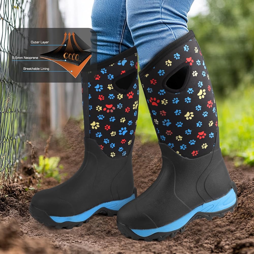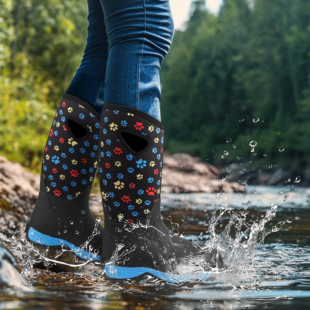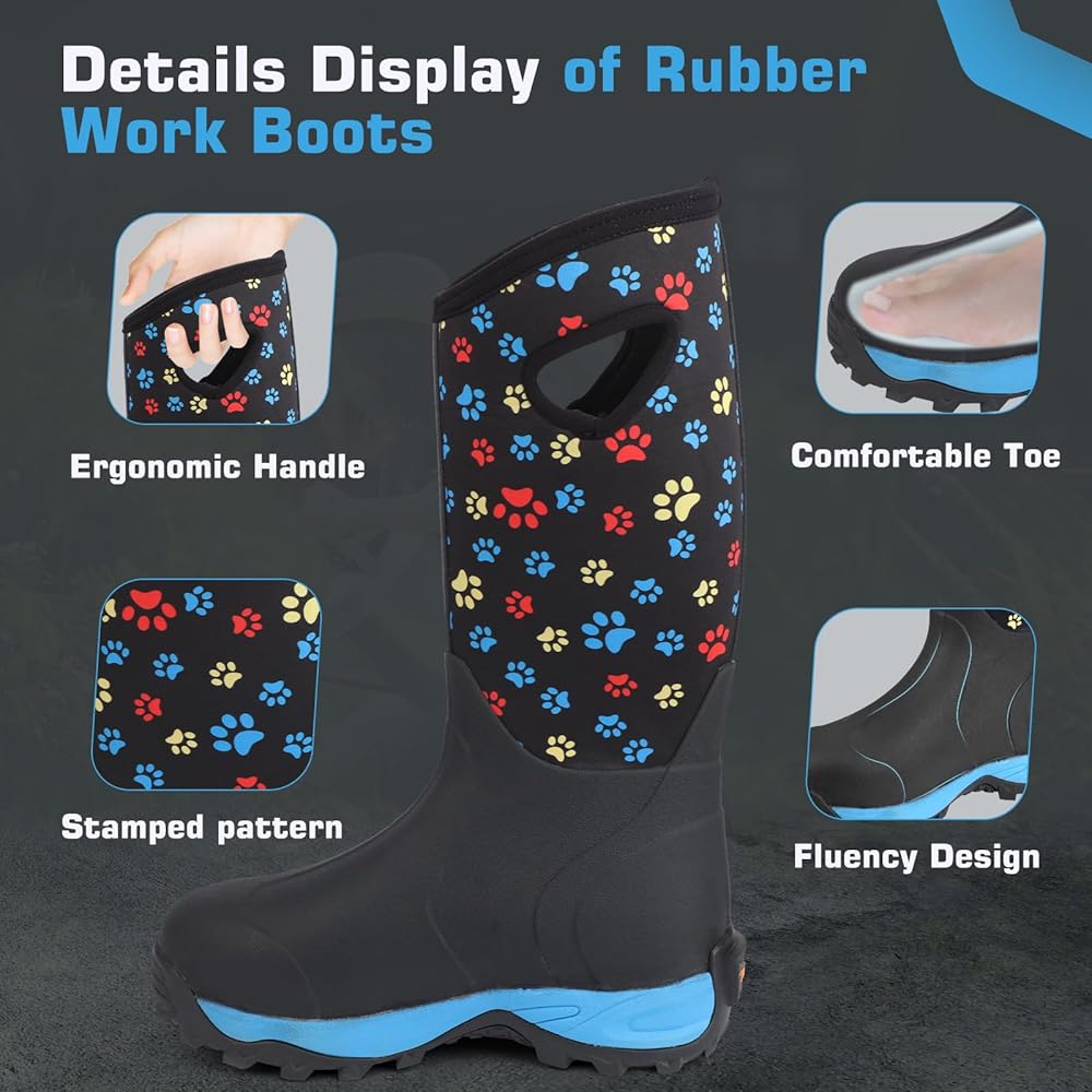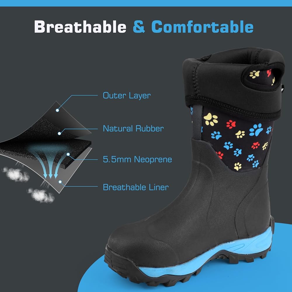 Material Features:The rainboots are made of lightweight rubber neoprene,and have a breathable fabric design that makes the boots overall more comfortable and breathable.