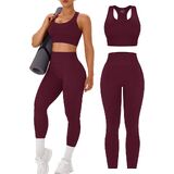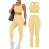 【Flattering Leggings And Crop Top】High-waist leggings with tummy control and butt lift, reshape your waist and hip line. Removable pads with racerback design provide more support to your chests during exercising.