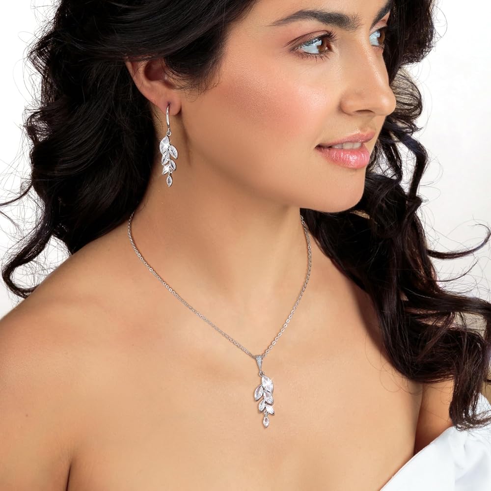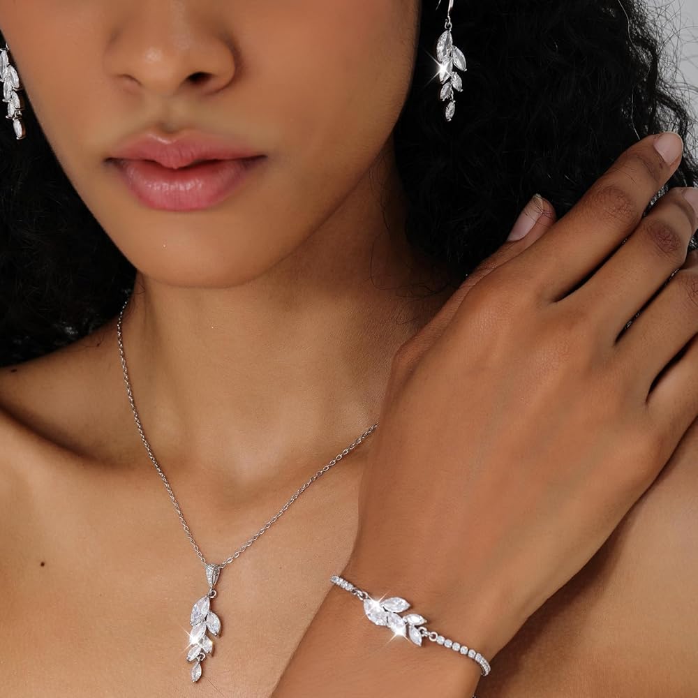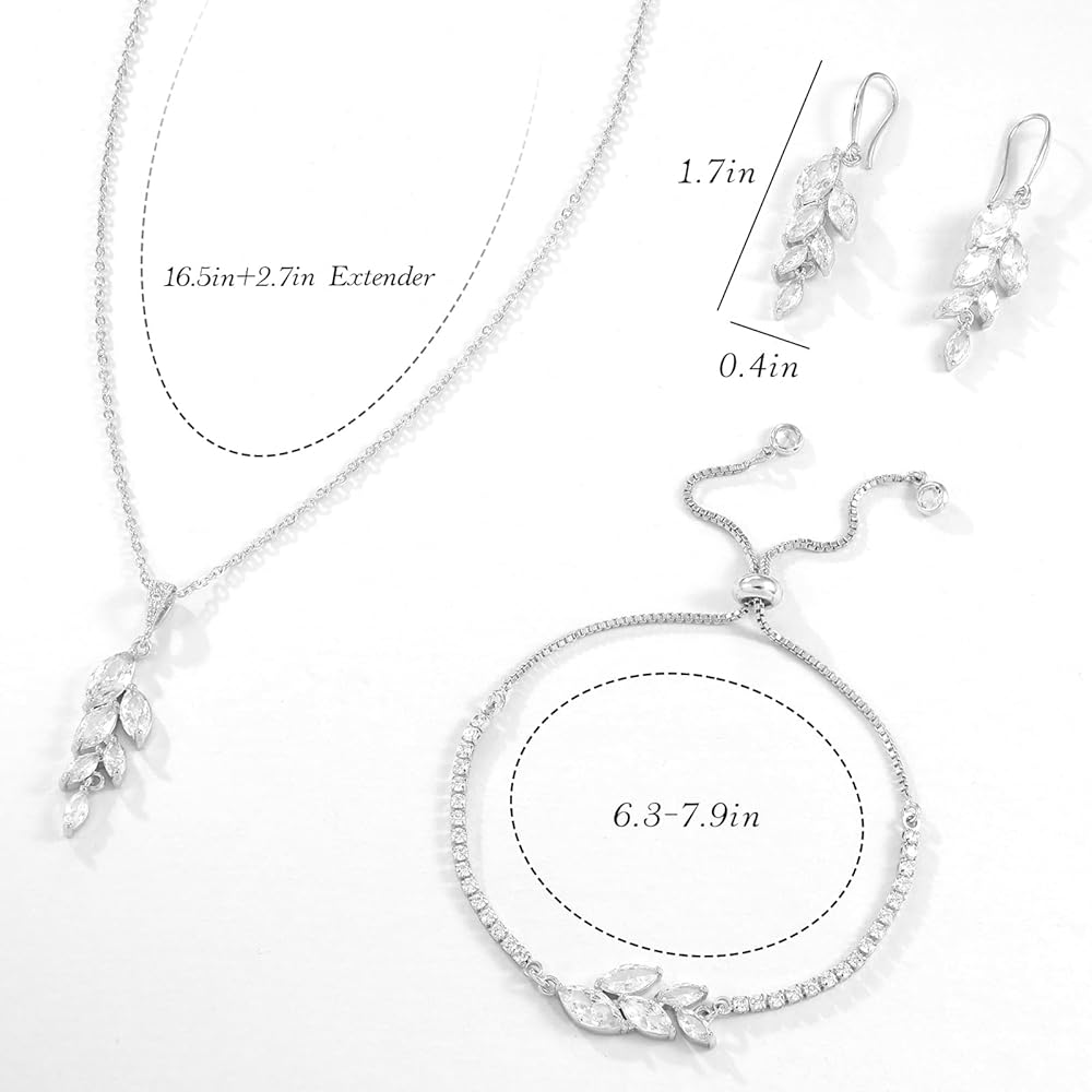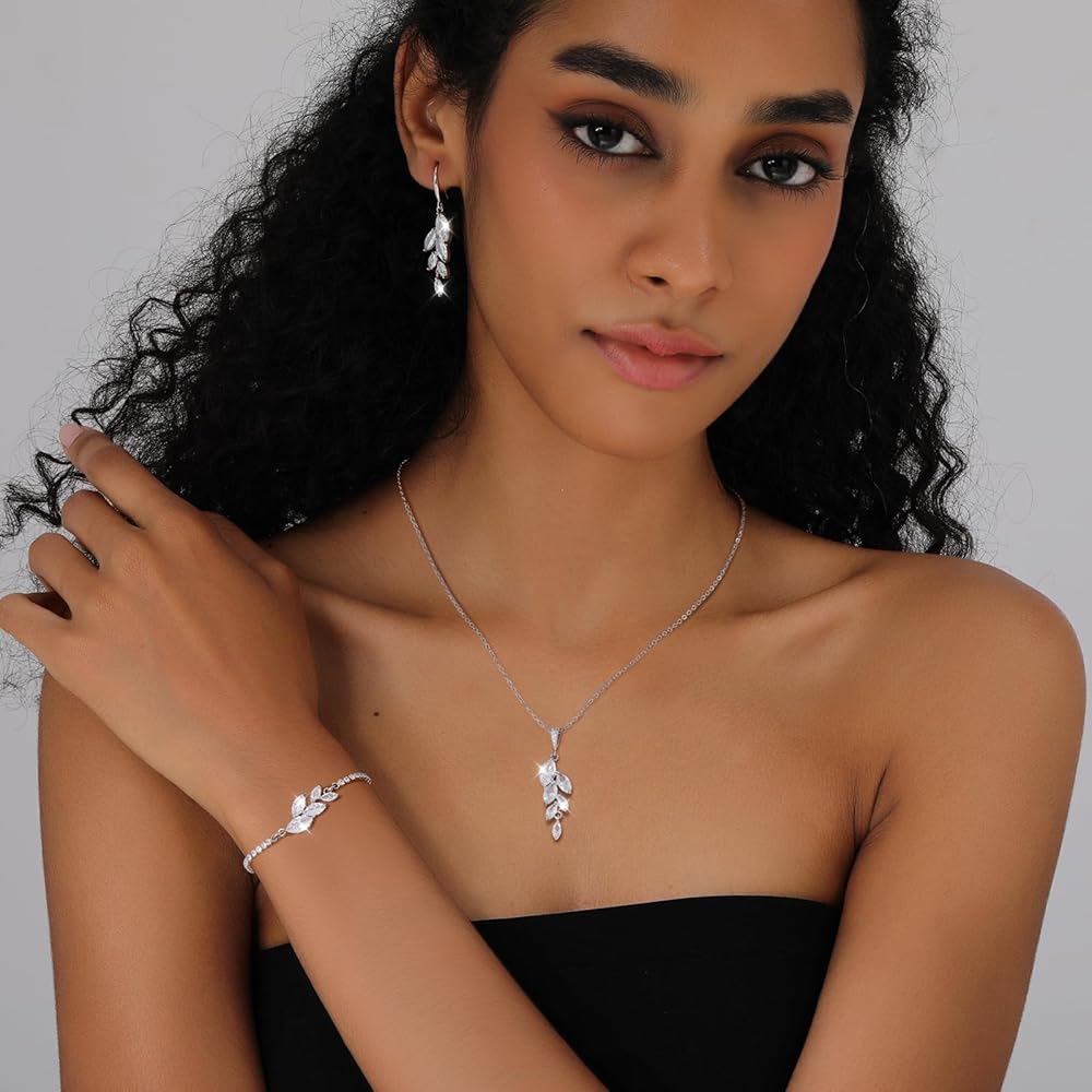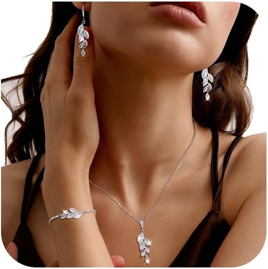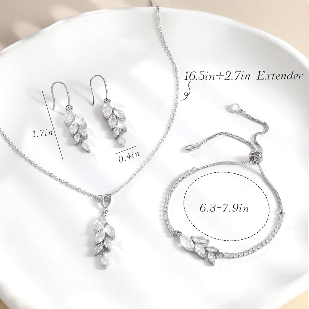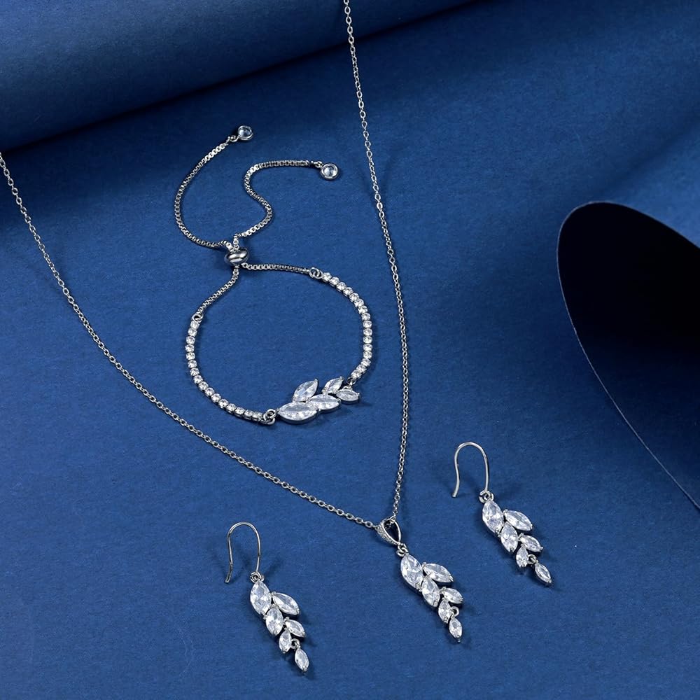 Ritach Jewelry Set for Women - Necklace Dangle Earrings Bracelet Set - Jewelry Set with White AAA Cubic Zirconia Allergy Free Wedding Party Jewelry for Bridal Bridesmaid
