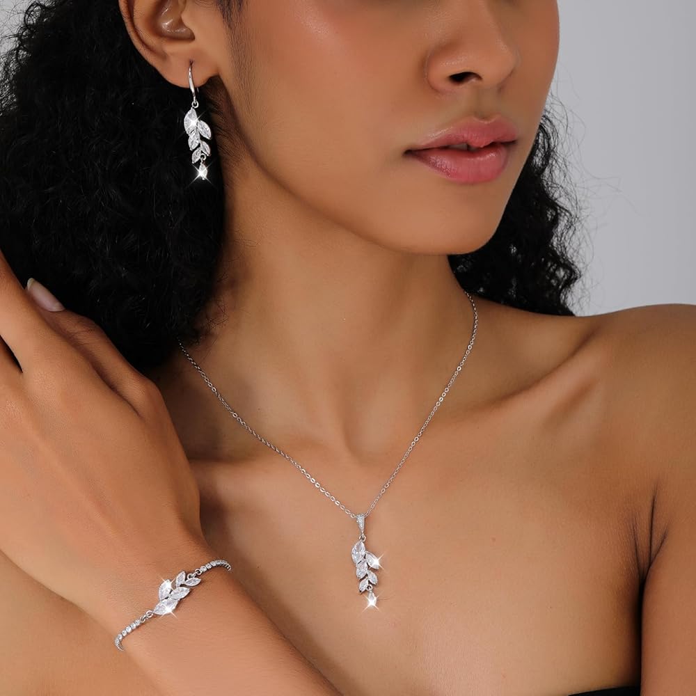 Material premiu quality: each leaf is inlaid with high brightness 5A+ cubic zirconia. This jewelry set is made of copper, lead-free, nickel-free, and will not cause allergies. Suitable for all skin types to wear for a long time, not easy to cause allergic reactions, so that you continue to be beautiful and elegant.
