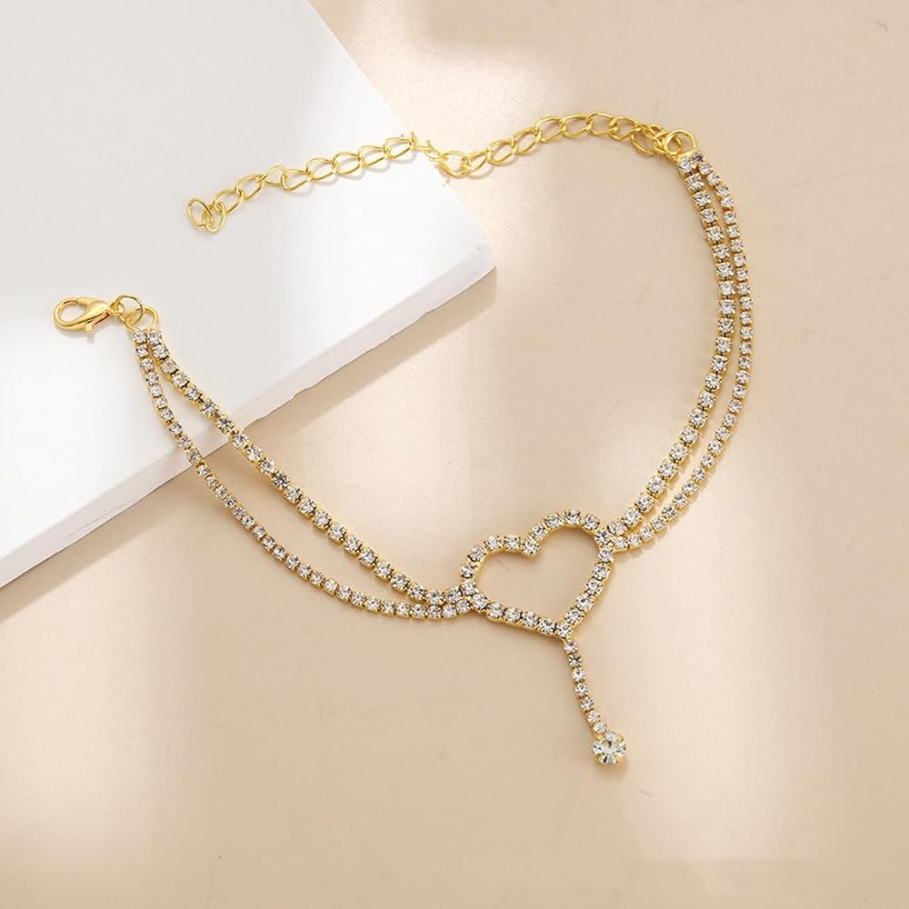 Heart Rhinestone Anklets Material:The Heart Anklets are crafted from alloy and sparkling rhinestones, ensuring durability and long-lasting brilliance. Tarnish-resistant and hypoallergenic, making them suitable for everyday wear