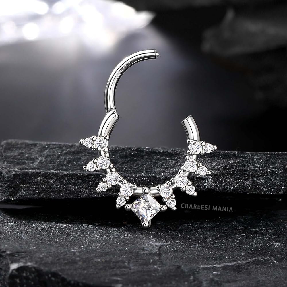 [Attractive Design]: This Septum Jewelry has a Square Zircon Design in the Center. AAA Grade Shiny, This Design Makes Your Piercing More Attractive.