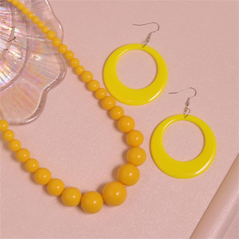 【UNIQUE DESIGN】 This set includes an exaggerated beaded necklace and a pair of openwork round earrings. The oversized style with high saturated colors and simple geometric shapes make this set look eye-catching and stylish.
