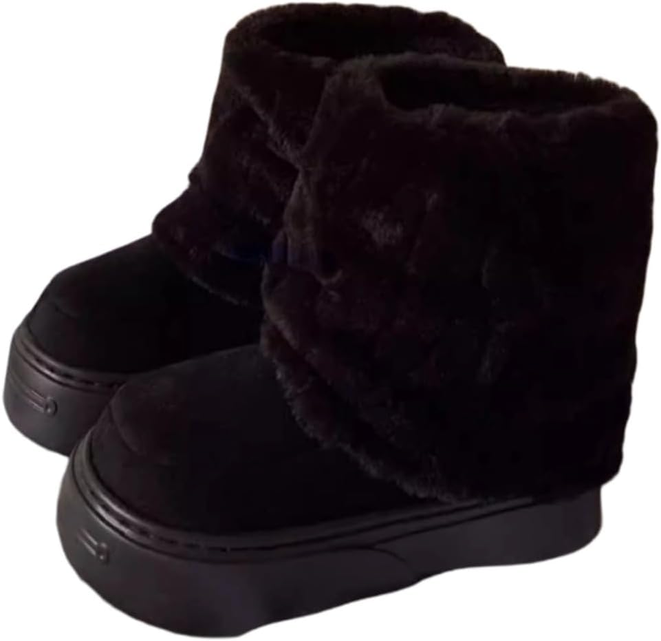 Cute Cat Design: Stylish and cute snow boots perfect for winter wear, featuring a fuzzy and plush faux fur lining.