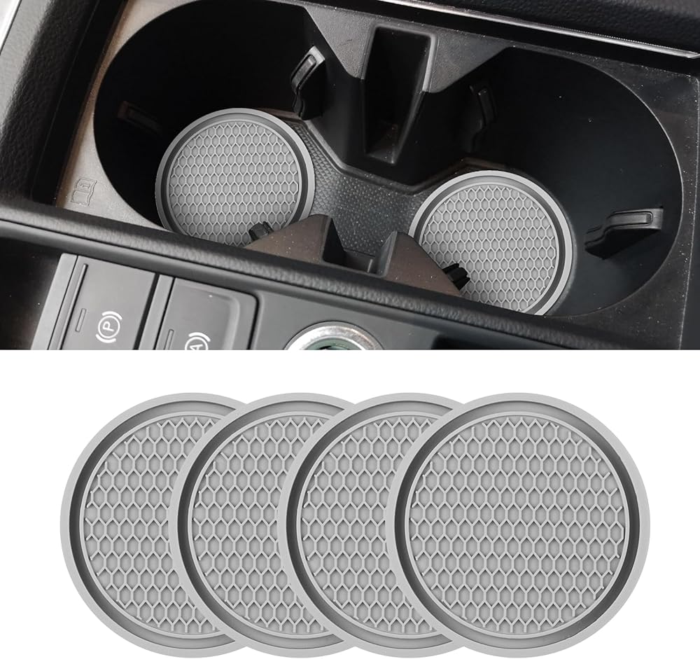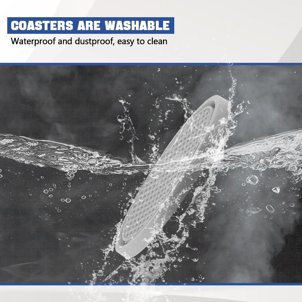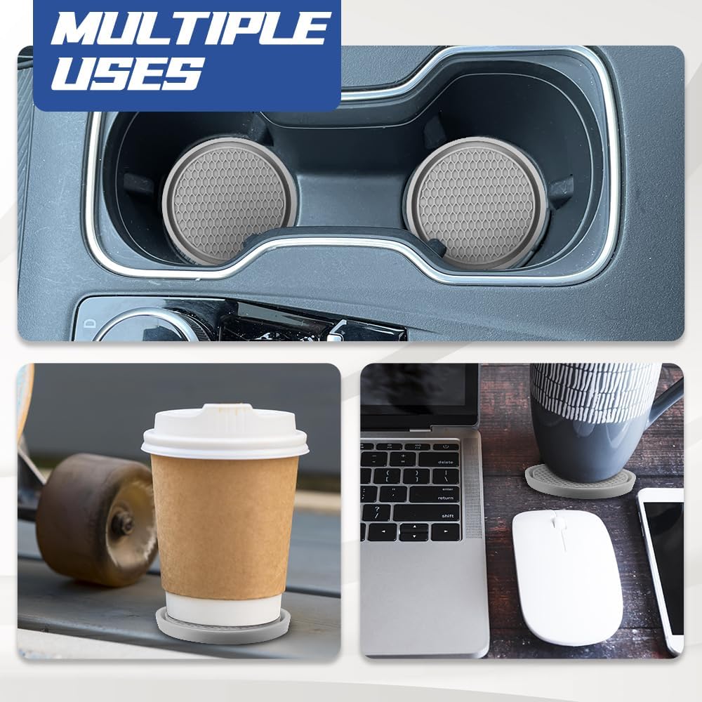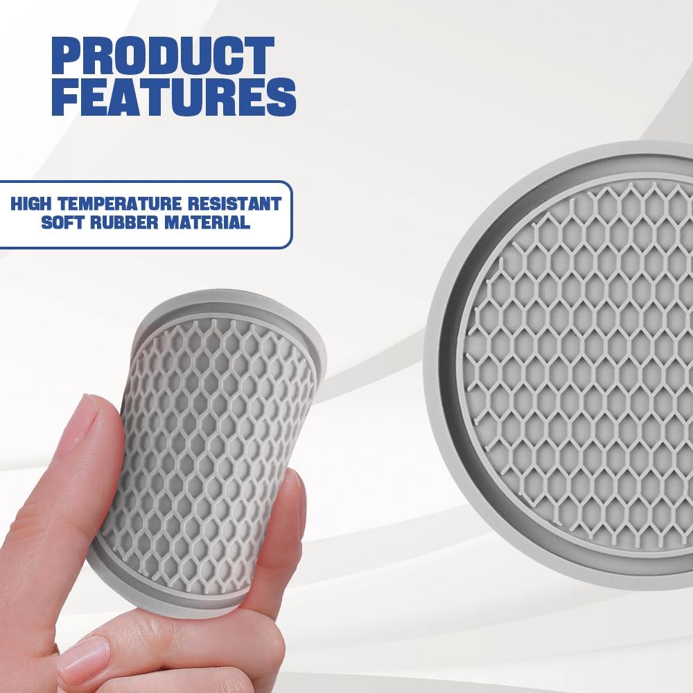 [Anti-slip design] : The surface of these cup holder coasters for car are a honeycomb grid design, anti-slip performance is good, can enhance the grip of the bottom of the cup, the water cup will not slide easily, can reduce the noise of the cup sliding when driving, can also effectively prevent the water/beverage in the cup drop, avoid dirty car.