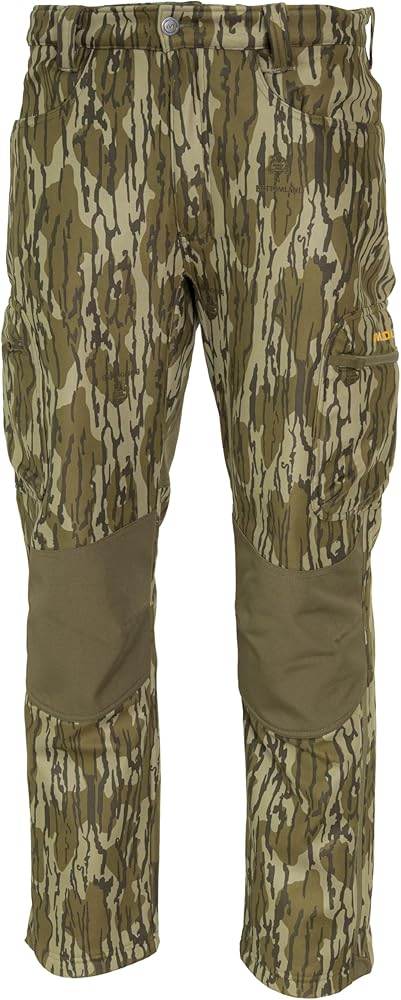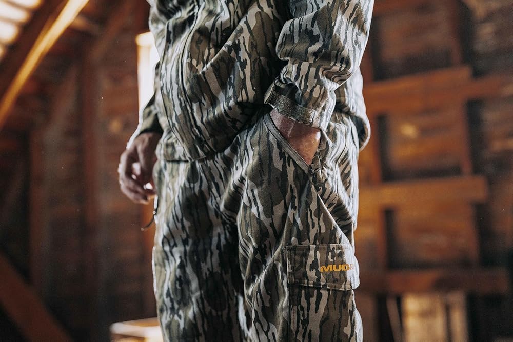 This hunting gear is constructed from 160g 100% polyester with a transparent film and a brushed tricot outer shell, providing durability and silent movement, ideal for hunting from above. It is 100% windproof and highly water-resistant, ensuring protection in harsh winds and damp conditions. Reinforced seat and knees add extra durability in high-wear areas, while zippered cargo pockets and a knife reinforcement pocket offer ample storage for essential gear and cutting tools. The half-zip leg openings allow for easy boot adjustments, and articulated knees enhance freedom of movement. This gear is suitable for temperatures ranging from 30°F to 60°F with appropriate layering.