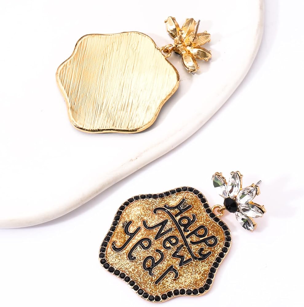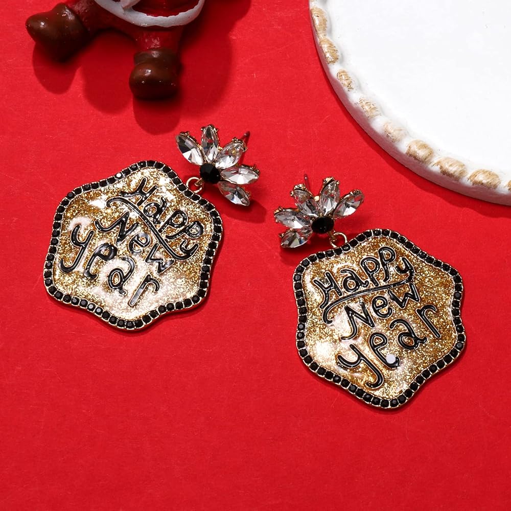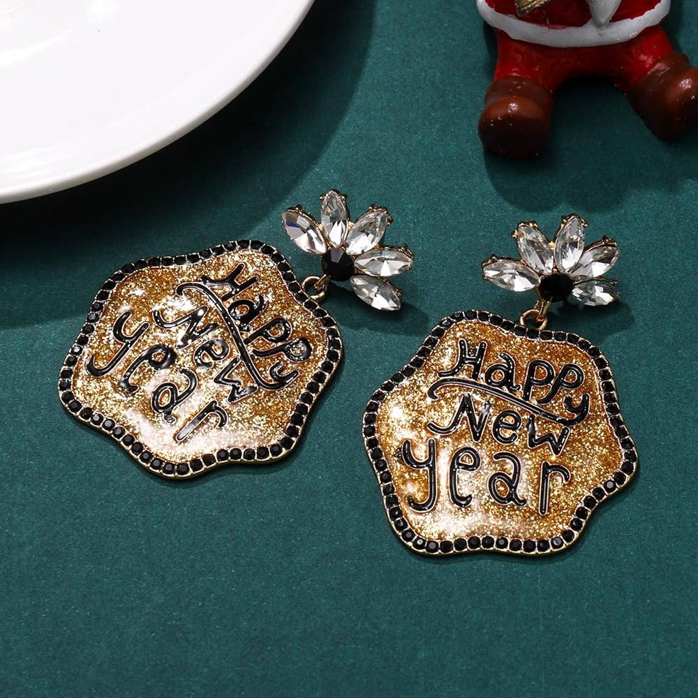 ✦أقراط رأس السنة الجديدة للنساء ✦: احتفل في أي مكان مع هذه الأقراط الرائعة! احتفل بنهاية عام 2022 وبداية عام 2023! احتفل بالعام الجديد 2023 مع هذه الأقراط الكريستالية اللامعة التي تتميز بتدلية كبيرة لامعة غير منتظمة الشكل تقول "سنة جديدة سعيدة"، مع حافة كريستالية لامعة. يمكن لهذه الأقراط الكريستالية الجميلة بعد رأس السنة الجديدة أن تعزز ملابسك بشكل أكبر وتضيف جوًا احتفاليًا.