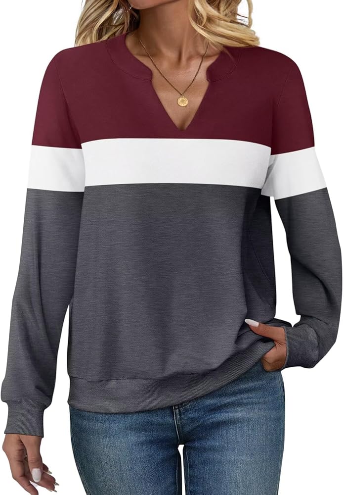 Design: Sweatshirts for women, a casual pullover tops for women, long sleeve, cute v neck, basic solid color, round neckline