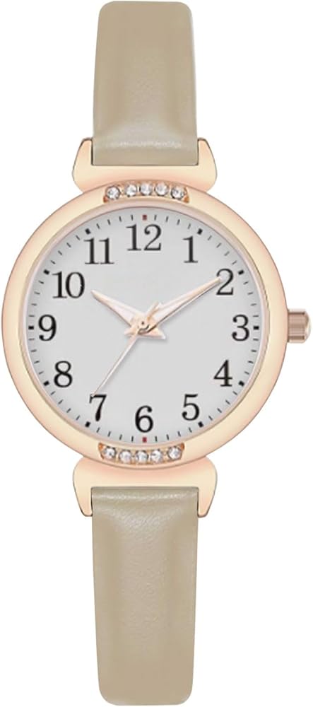 Elegant Design: This women's quartz watch features a classic round case adorned with sparkling crystals, lending a touch of sophistication and glamour.