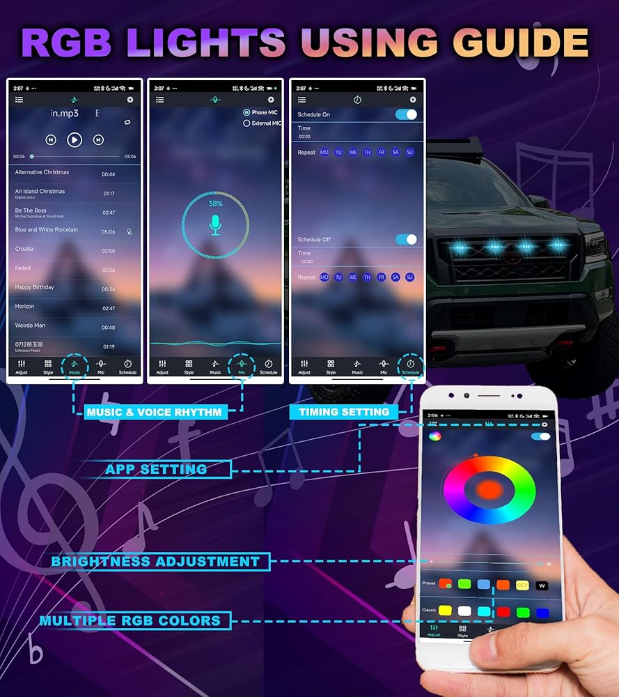 [Self-warning Function]: In nighttime, the frontier led grill light can help other drivers quickly spot your car, and even play a warning role for animals that suddenly break into the highway, thus improving driving safety.