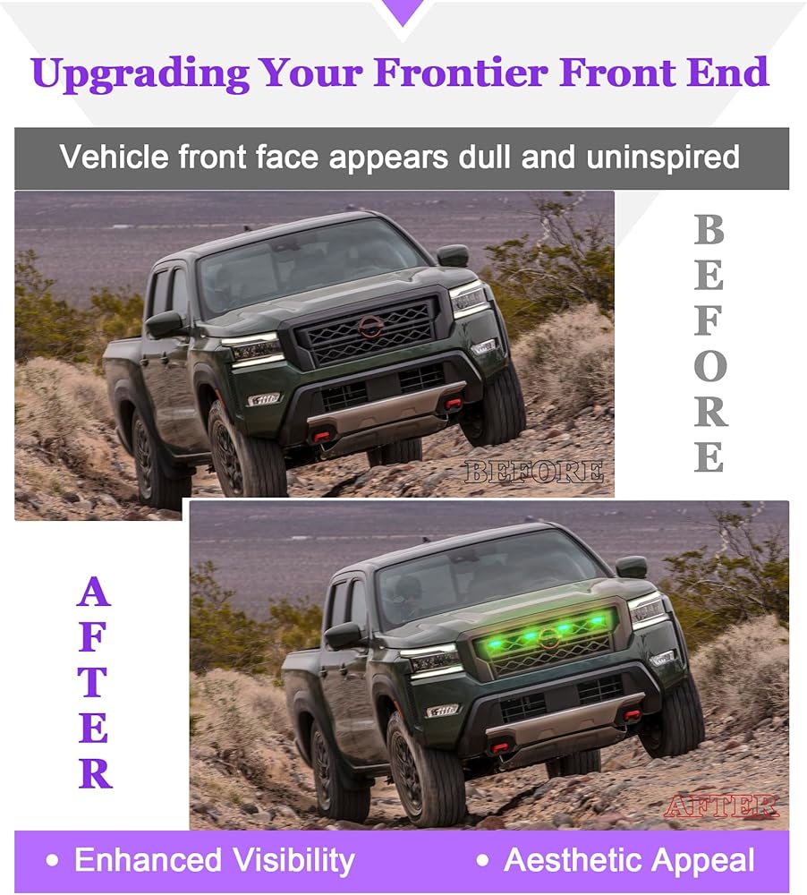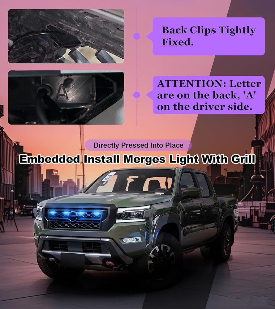 [Frontier Grille Light Kit Compatibility]: These frontier grill lights are specifically tailored for Frontier 2022 2023 2024 all models(North American version).They are securely clipped onto the factory grill.