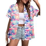 MATERIAL: This short sleeved chiffon hawaiian shirts are super soft, flowy, lightweight and skin-friendly. It makes you feel cooling and so comfortable in summer outdoor!
