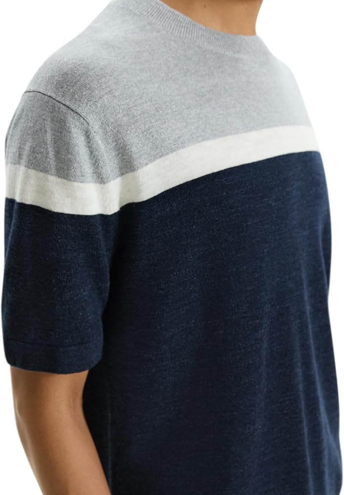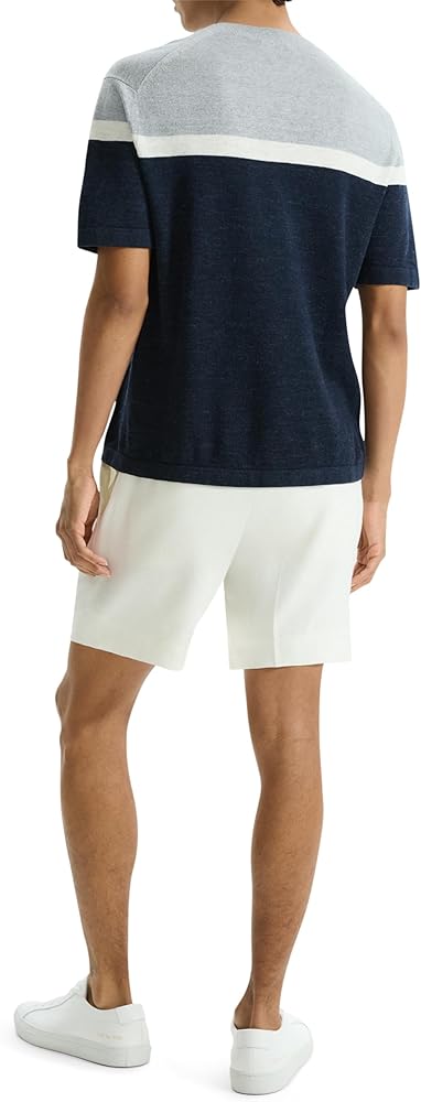 Theory Men's Striped Short Sleeve Crew in Pacific Linen