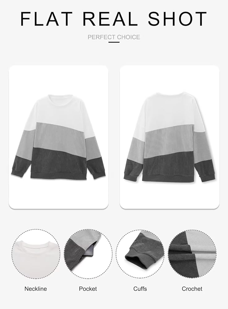 Features: Womens Sweatshirt Feature with Corduroy, Fashion Hoodies & Sweatshirts,cute color block, basic solid color, round neckline,and hidden side pockets design