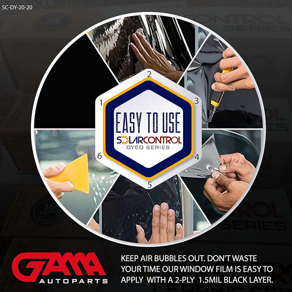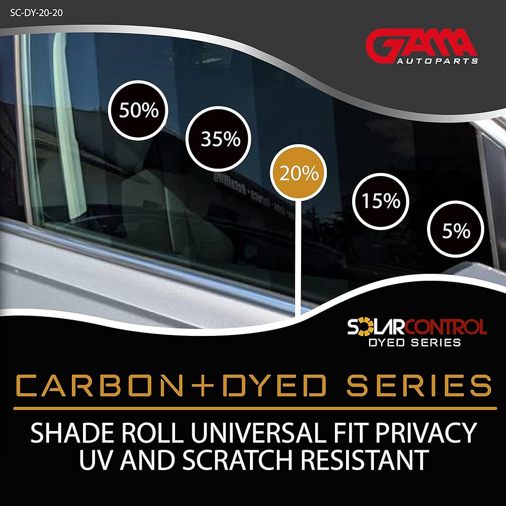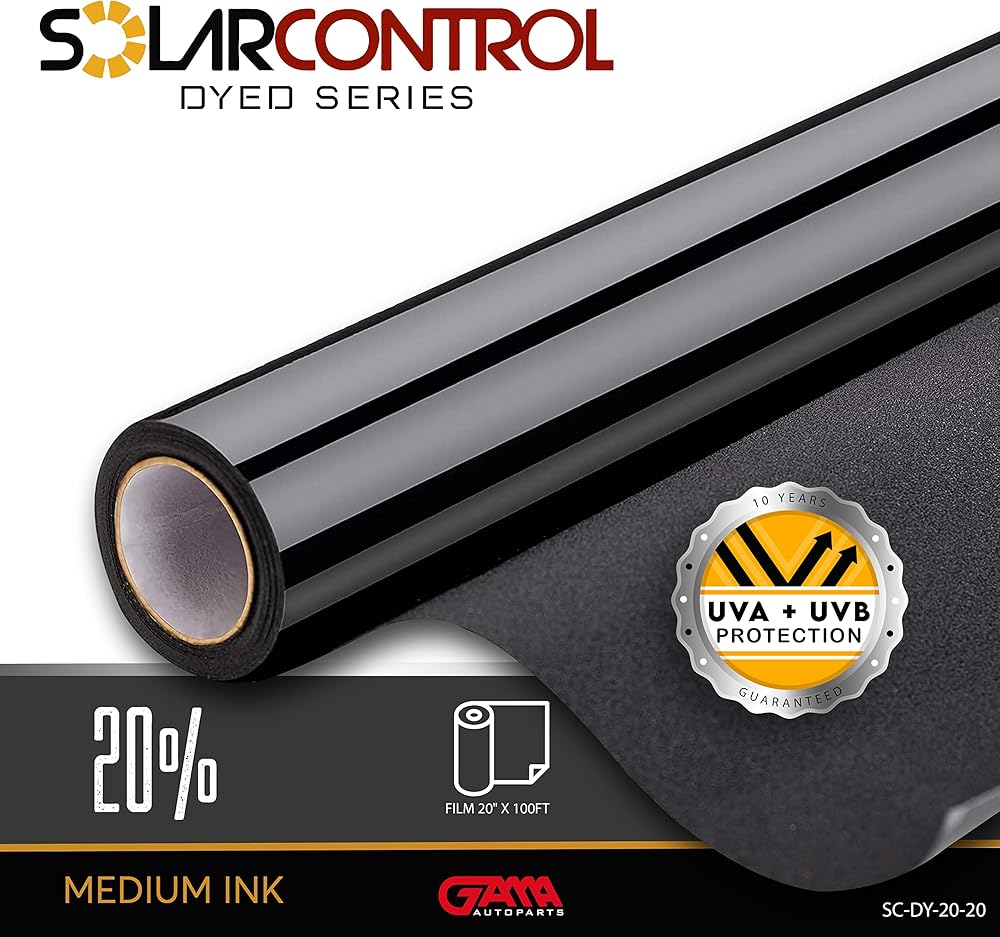 SOLARCONTROL Window Tint Car Film 2PLY 100% UV Rejection Dyed Shade Roll Universal Fit Privacy UV Sun Block and Scratch Resistant (5% Darkest Shade, 20" x 10FT)
