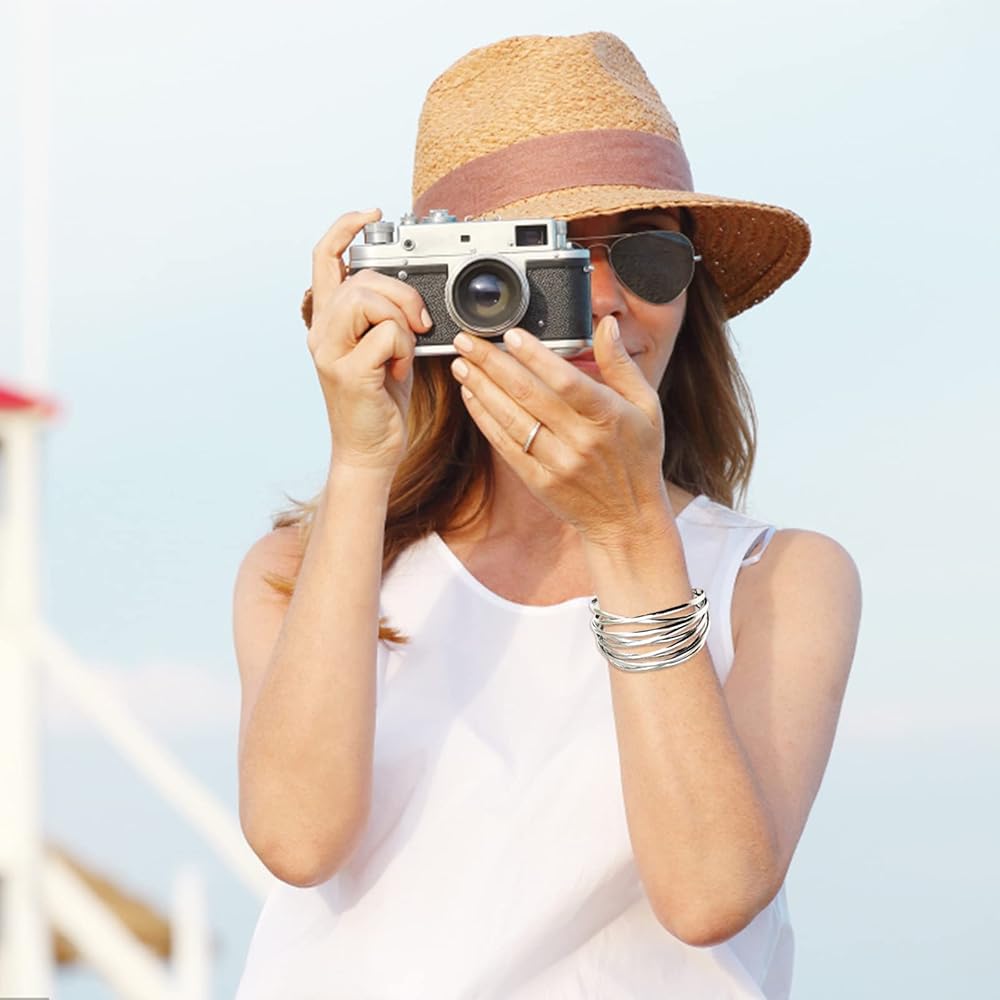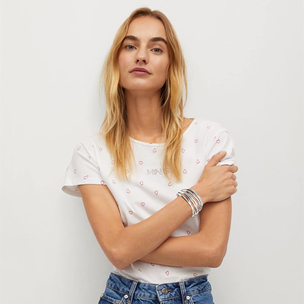 ♡Exquisite Craft - This elegant and luxurious metal bracelet is exquisitely made and fully polished for the most comfortable wearing feeling. Metal geometric bracelet made of open cuffs, suitable for your wrist