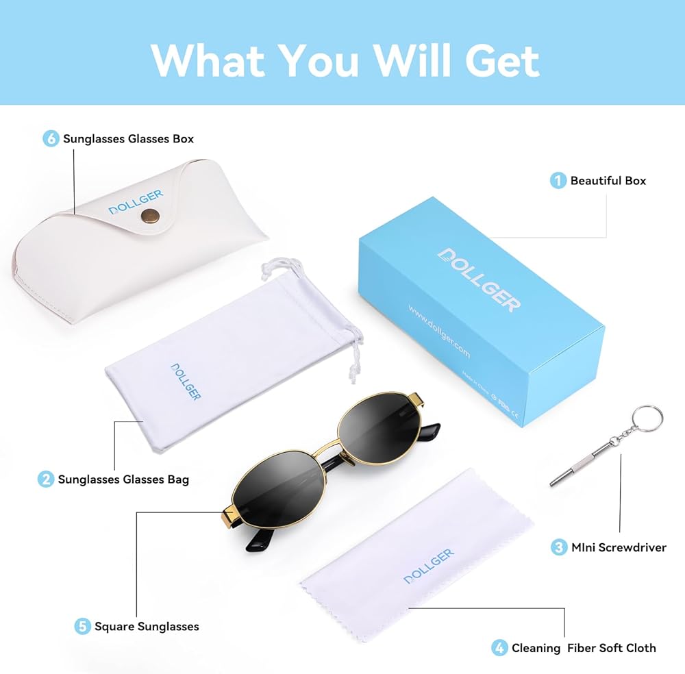 HD UV400 POLARIZED LENS: Dollger trendy oval polarized sunglasses adopt TAC polarized lenses, which can effectively block UV rays, reduce sun glare and restore true colors. Protect your eyes from the harmful rays of the sun.