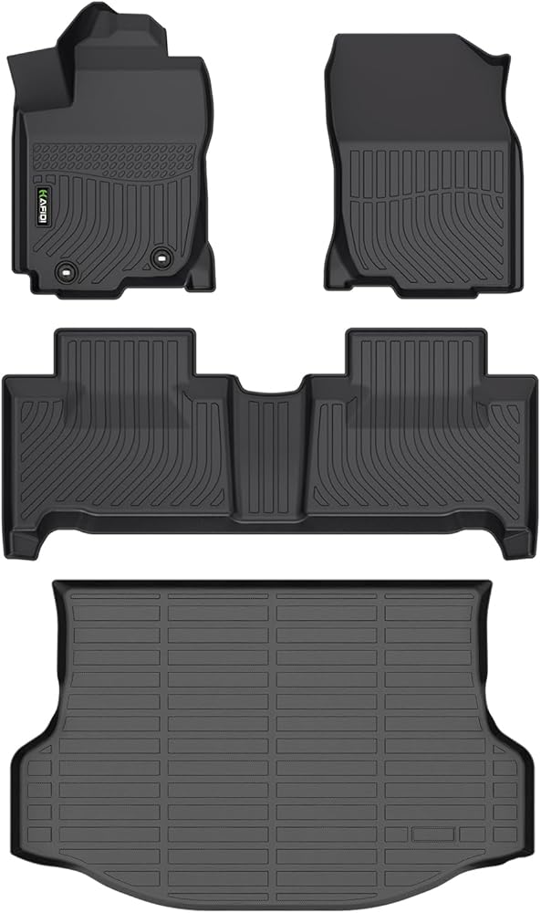 【ALL-WEATHER PROTECTION】HAFIDI weatherproof mats. Ergonomically designed channels and raised edges effectively trap liquids, sand, snow, etc. and protect the vehicle floor well. The anti-slip buckle design is consistent with the original car position to ensure that the floor mat is firmly fixed in place.