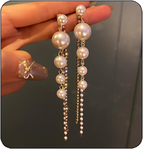 Great Earrings - These Long Tassel Pearl Dangle Earrings will be a special Earrings for women. You can wear it for any occasion, such as Independence Day, Halloween, Christmas, Valentine's Day, Mother's Day, birthdays,The bride, the wedding party, anniversaries, homecoming, graduations, engagements, or special parties.