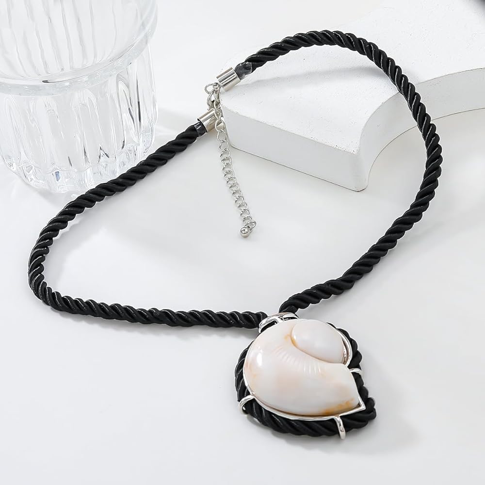 Beach-Inspired Design: This conch mermaid sea shell choker necklace captures the essence of summer with its beachy and boho style. The seashell pendant paired with a black rope chain adds a coastal charm to any outfit.